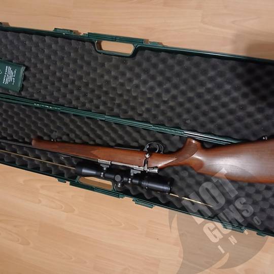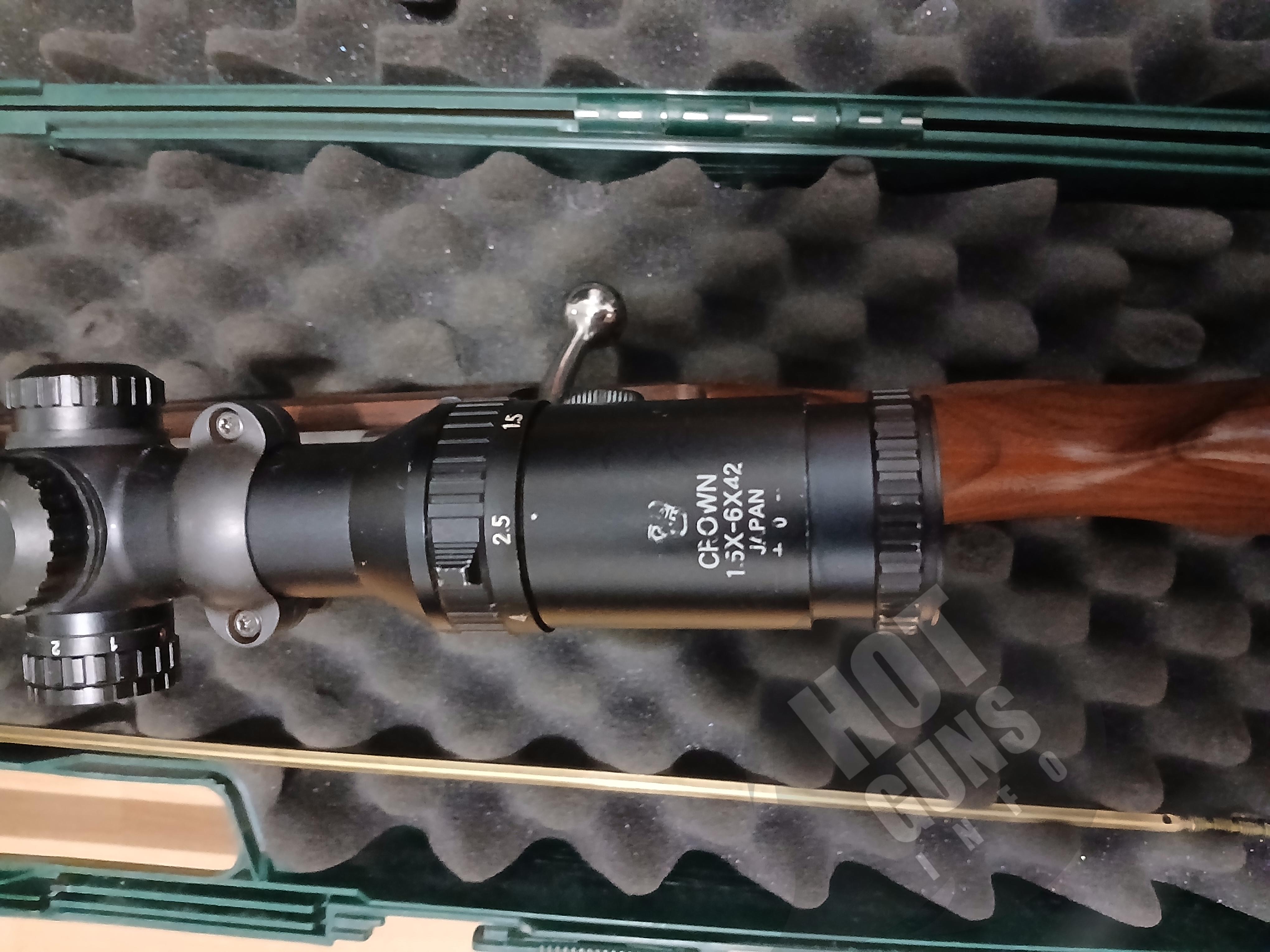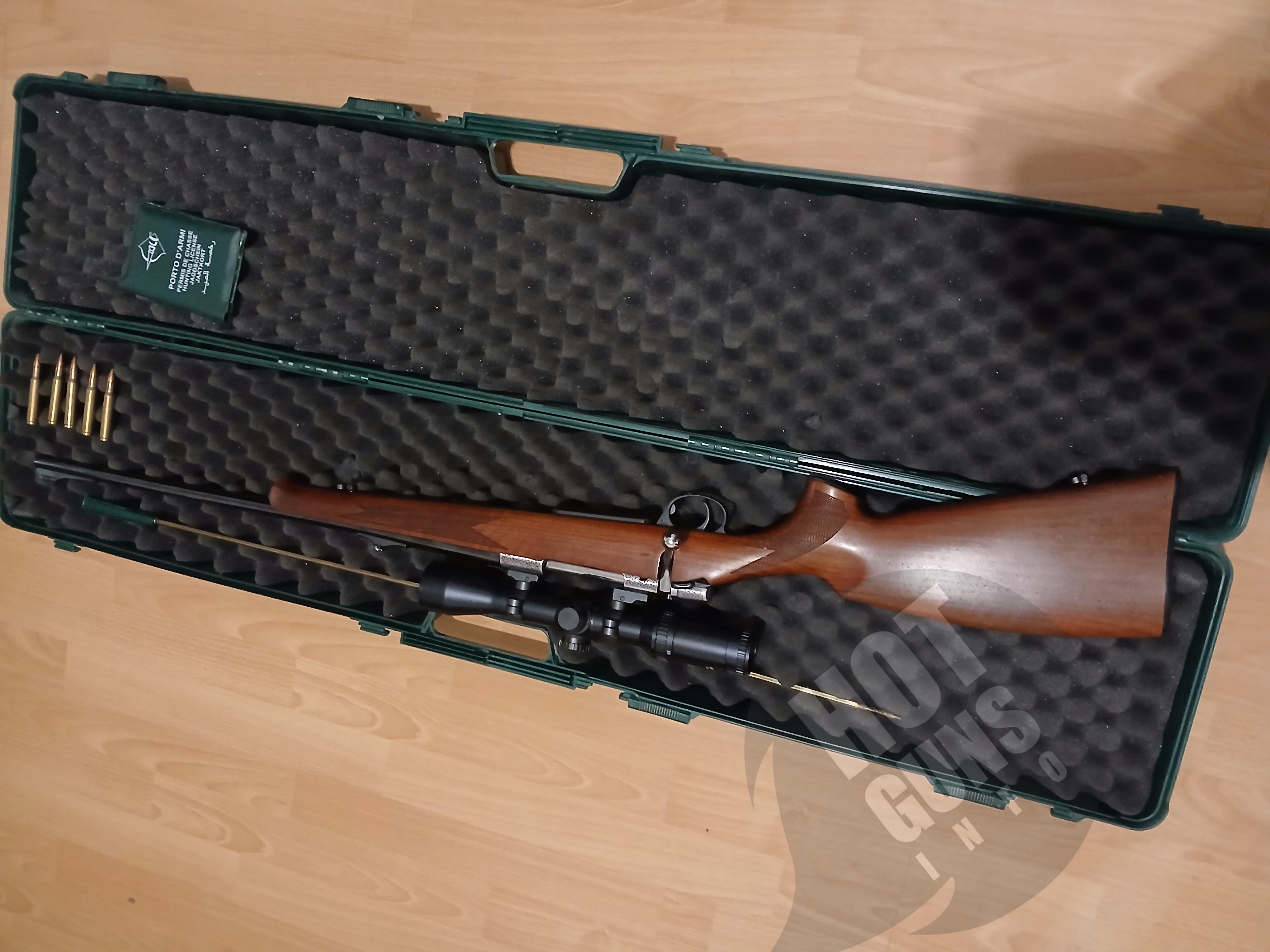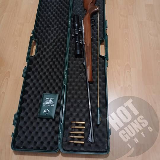 Продам карабін "Antonio Zoli AZ 1900 Lux" калібр 30-06 Spr, рік виготовлення 2008, Італія, в гарному стані, настріл - 55 патронів. Встановлений оптичний приціл Hakko Crown 1,5x6-42, Японія, прицільна мітка в першій фокальній площині (збільшується при збільшенні кратності) з червоною підсвіткою. Пластиковий кейс, латунний шомпол. Продаж через дозвільну в Києві