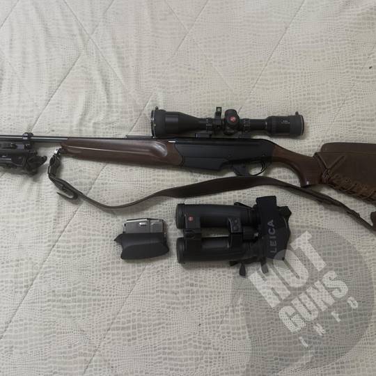 Оптика: Leica ER i 3–12×50 BDC — класичне німецьке/португальське складання, підсвітка, балістична сітка з маркуванням під класичні патрони .30-06. Ідеальний нуль, чітке зображення навіть у сутінках.
