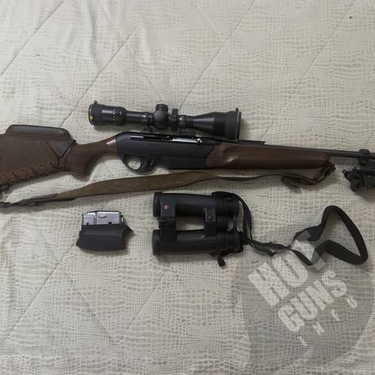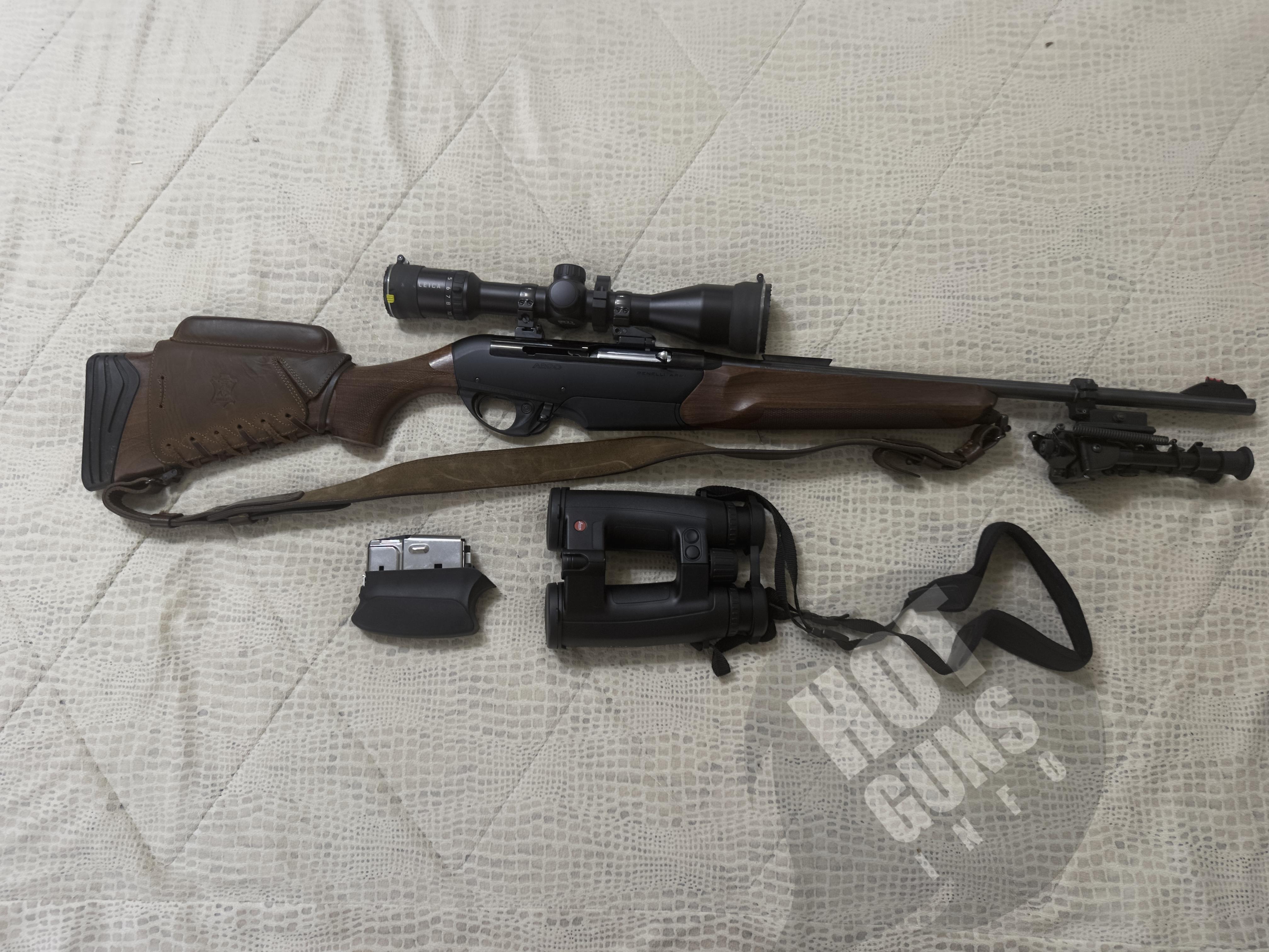 Карабін: Benelli Argo, калібр .30-06 Springfield — дерев’яне ложе, газовідвідна система, напівавтомат. Ствол без корозії, корпус чистий, настріл ~20–30 пострілів (лише тир). Карабін не експлуатувався в полі, під дощем чи брудом.