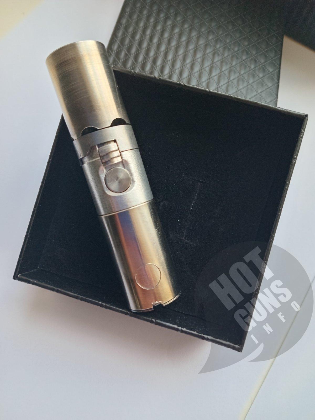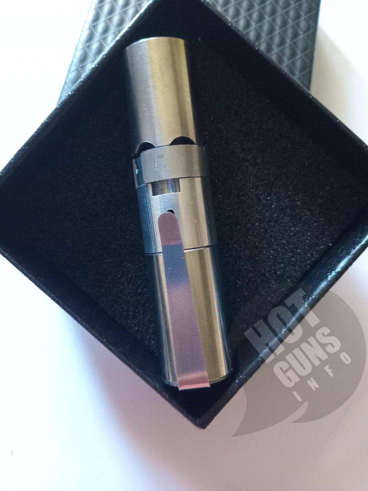 Портативний шестизарядний пристрій-брелок під патрони Флобера. Нержавіюча сталь.тільки кожух патронника сталь45. Довжина-77мм, Діаметр-20мм, Довжина стволиків-25мм Вага-107г Брелок оснащений запобіжником від випадкового пострілу. Один взвод-почерговий подвійний постріл або дуплетом. компактний, легкий, зручний у носінні.