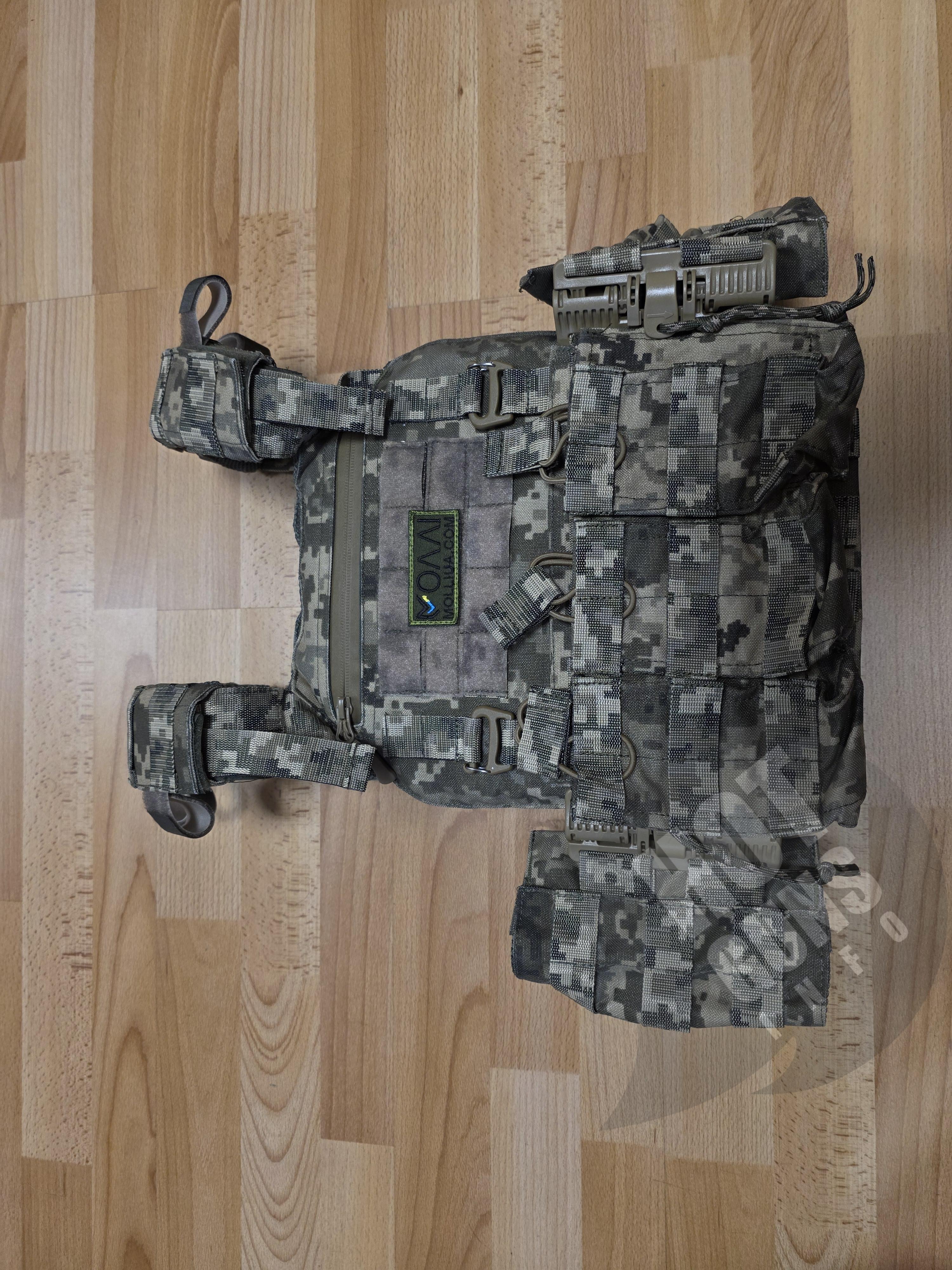 Новий бронік, 2 пластини металеві але легкі по 3,1 кг, жилет з швидкоскидом, кишенями під боковий захист, 3 підсумки під 2 магазини в кожний