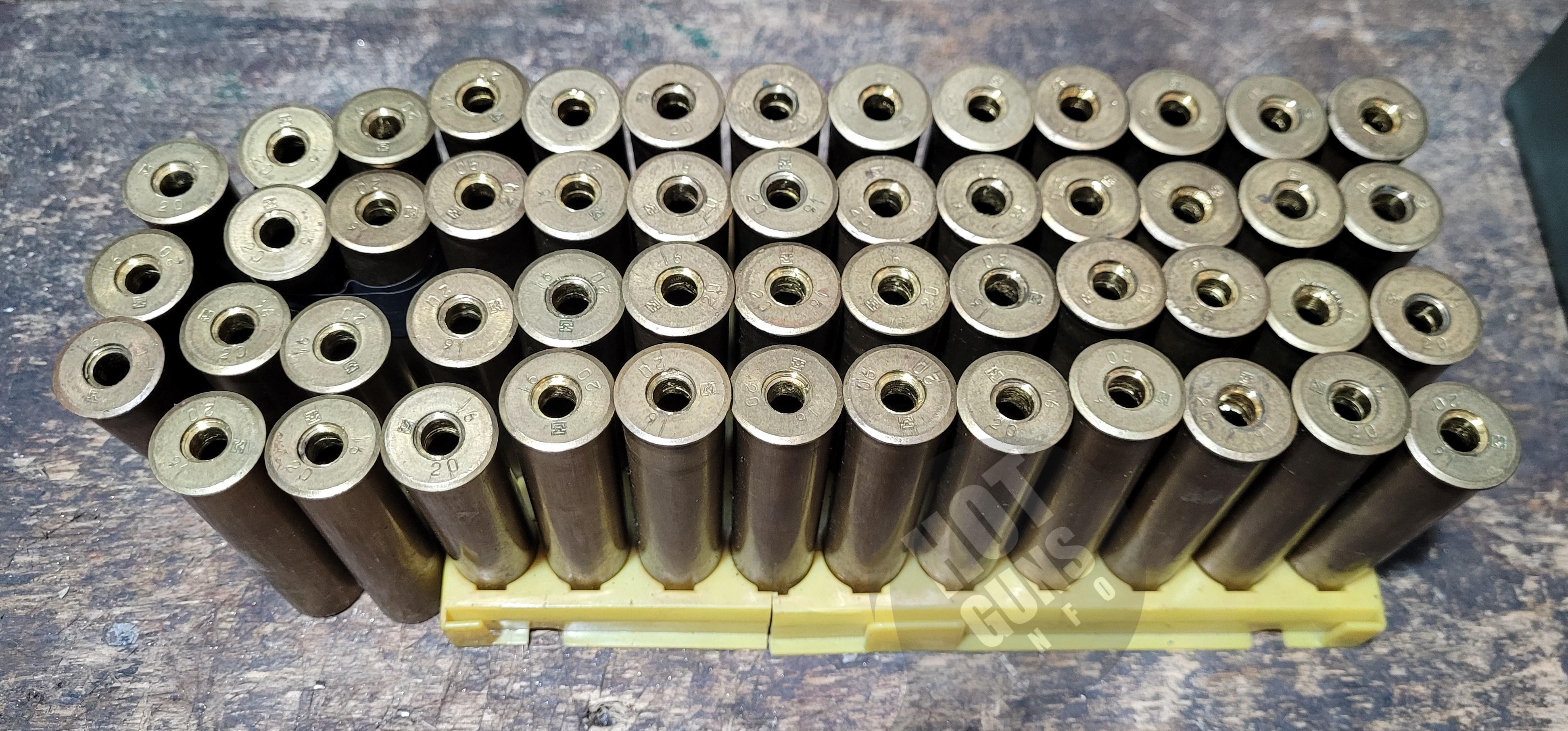 Гільзи 20 калібра, латунь. Стан відмінний. Прокалібровані та почищені. 54 шт - під єврокапсуль. 141 шт - під центробой. По 20 грн/шт. (3900 грн. за всі).