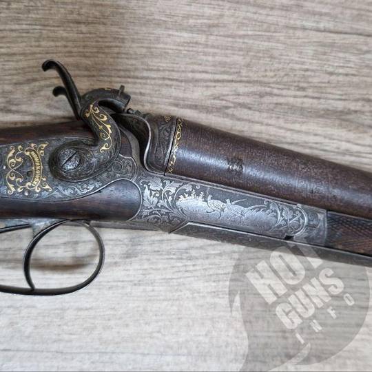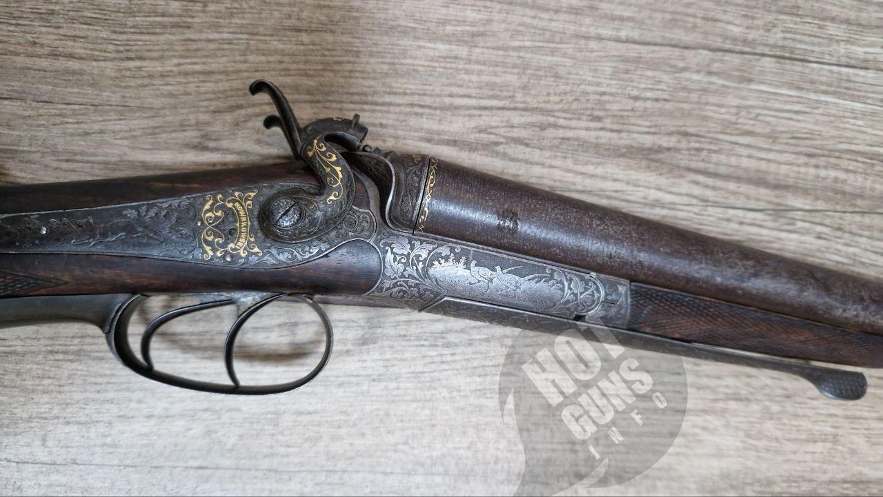 Стара рушниця 16 калібру, приблизно 1880 року виробництва майстера Johana Nowakowski. Стан в оригіналі. Шату, прогарів, раковин і ніяких замаскованих дефектів не має.