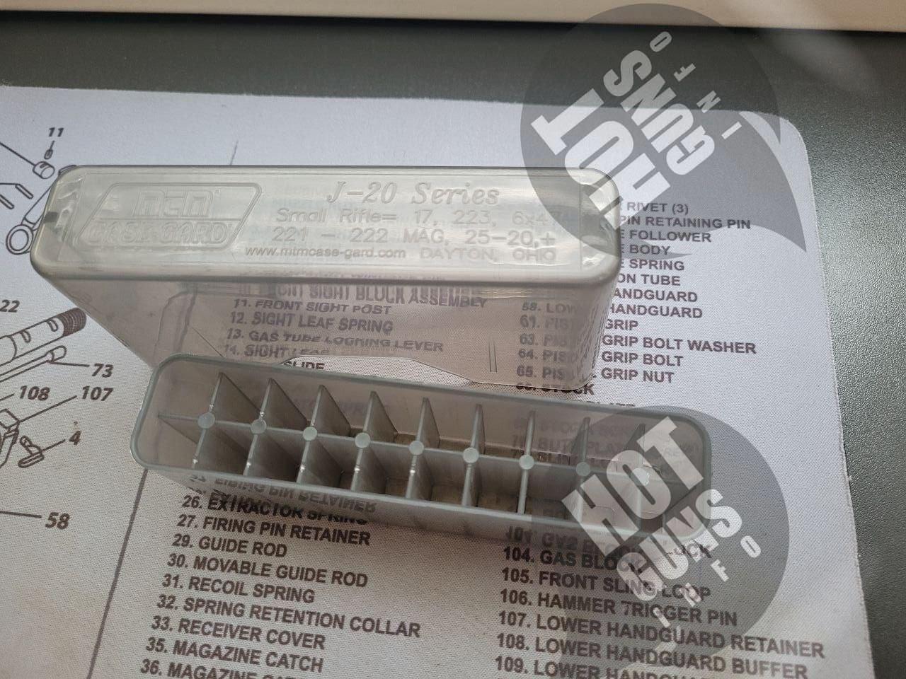 Коробка MTM-J-20-XS (США) для хранения 20 патронов : 223 Rem, 17, 6x47, 221 - 222 MAG, 25-20, + др. в таких размерах.