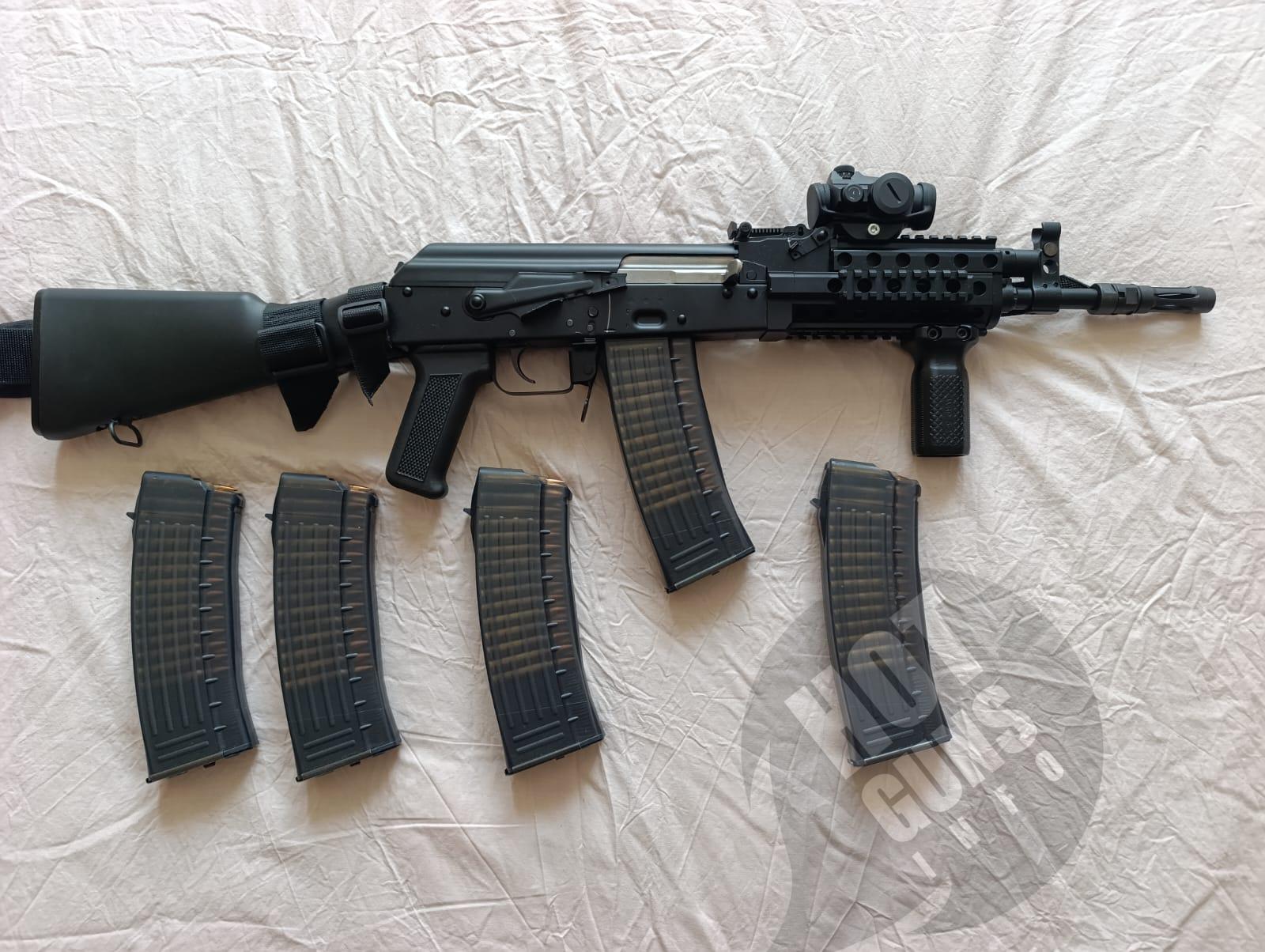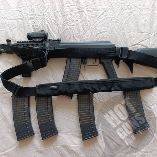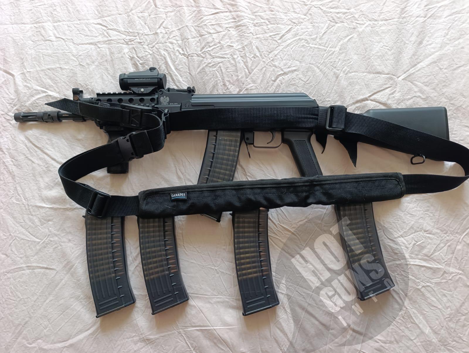 Продам власний карабін системи АК виготовлений в Польщі. Патрон 223 rem або 5.56*45 NATO. Настріл карабіну 30-40 набоїв. Додатково в цю ціну входить коліматорний приціл, пристріляний на 100 метрів, досить надійний (був встановлений на AR-15 настріл більше 1000 один раз підрегулював при зміні набою). Також з карабіном віддаю три точковий ремінь Danaper, дуже зручний, встановлюю такі на всю свою зброю. Та 5 магазинів на 30 набоїв кожен. Продаю тому що я їм не користуюсь від слова "зовсім" маю ще декілька одиниць вогнепальної зброї. По факту в тир їду з карабіном AR-15, а на службі маю АКС-74У з якого стріляю найчастіше. Підбирав дану одиницю зброї як найбільш схожу до АКСУ так як з нею маю найбільші навички - вибір себе виправдав. З карабіном зручно пересуватись в авто, а також він вміщується в цивільний рюкзак, що дає змогу зручно переносити його по місту. Новий карабін в магазині без нічого коштує 63000 тому торгу не буде. Для довідки ремінь 1500, магазин 900 за один, коліматор приблизно в районі 5000-7000. Вважаю ціну з допами більш ніж адекватною за нову зброю