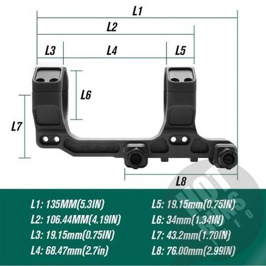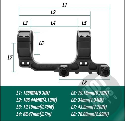 - висота 1,70 дюйма, що є типовою висотою для коліматорних прицілів з нижньою точкою 1/3