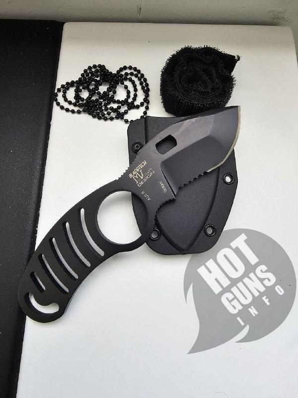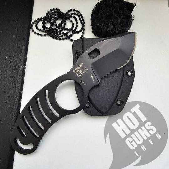 Однаково зручний для використання як лівшами, так і правшами. У набір входить ланцюжок для носіння ножа на шиї. Дизайн ножа був спроектований Майком Веллекемпом (Mike Vellekamp) з компанії Блейд-Тек® (Blade-Tech®).