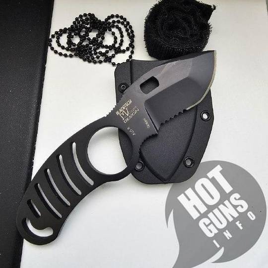 Однаково зручний для використання як лівшами, так і правшами. У набір входить ланцюжок для носіння ножа на шиї. Дизайн ножа був спроектований Майком Веллекемпом (Mike Vellekamp) з компанії Блейд-Тек® (Blade-Tech®).