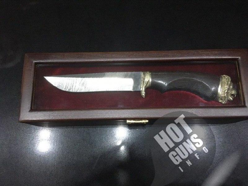 Нож комплектуется ножнами из кожи.