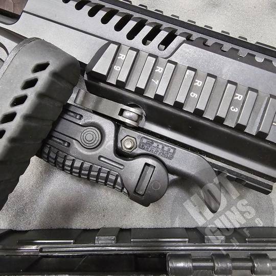 Складаний приклад полегшує перенесення і зберігання зброї.