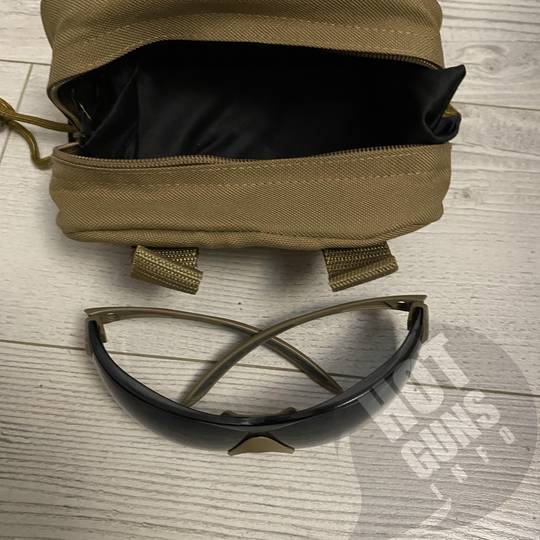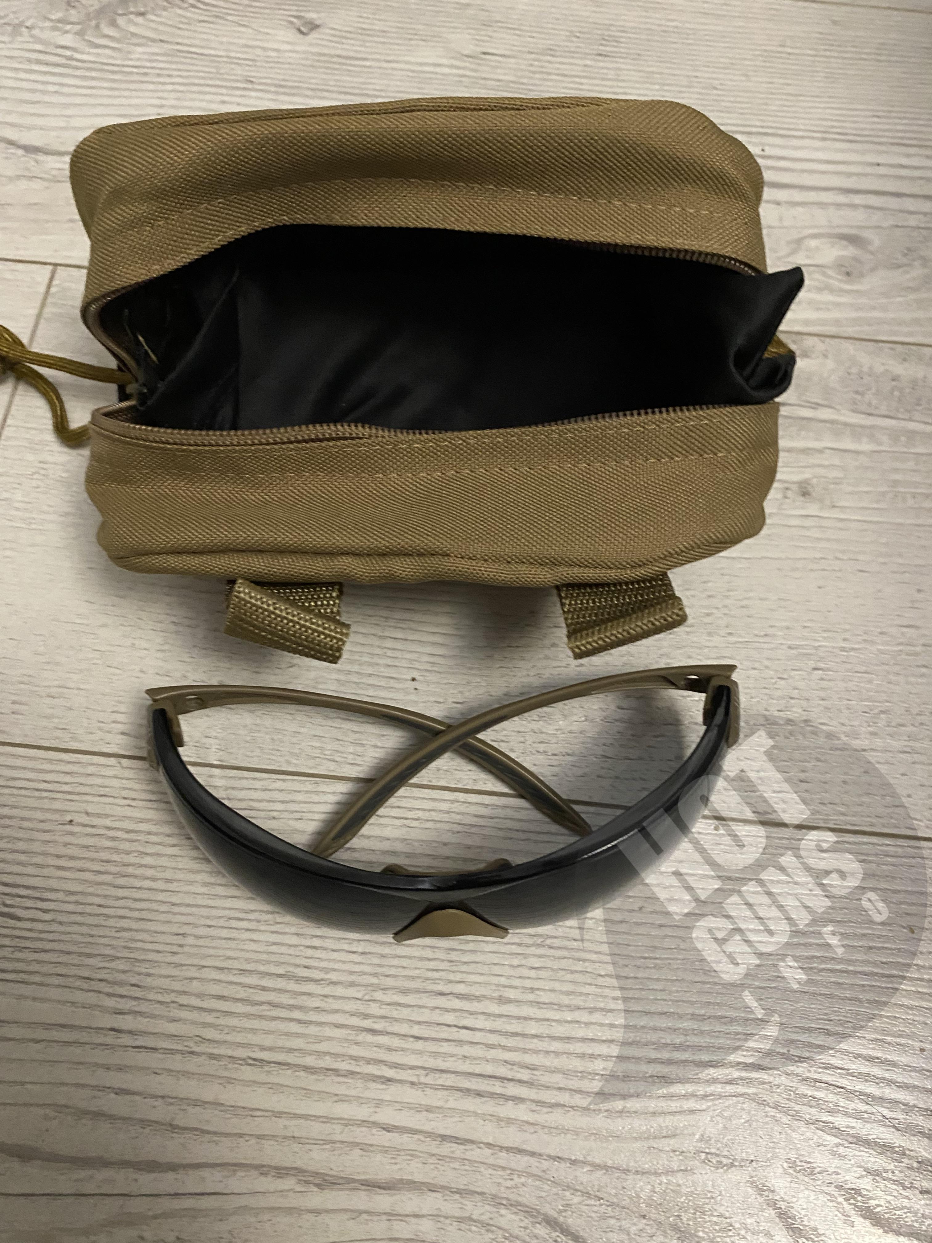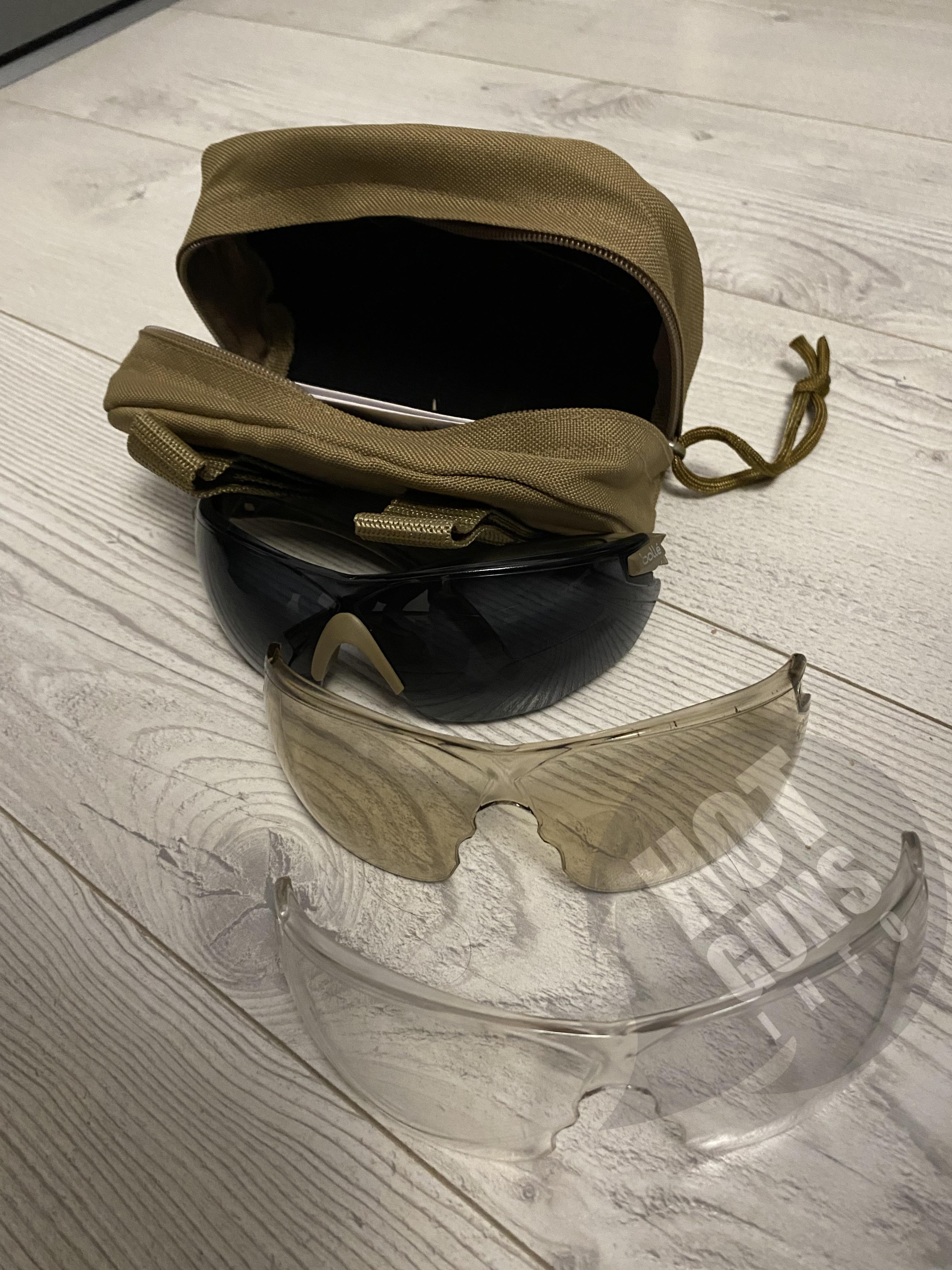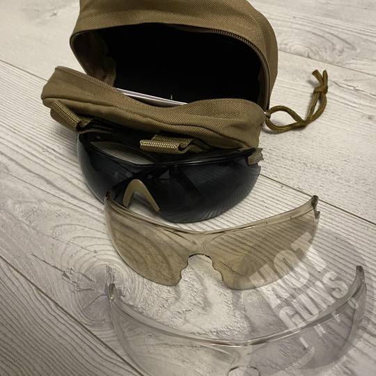Окуляри, прозоре скло має забруднення. Темне та жовте скло без пошкоджень.