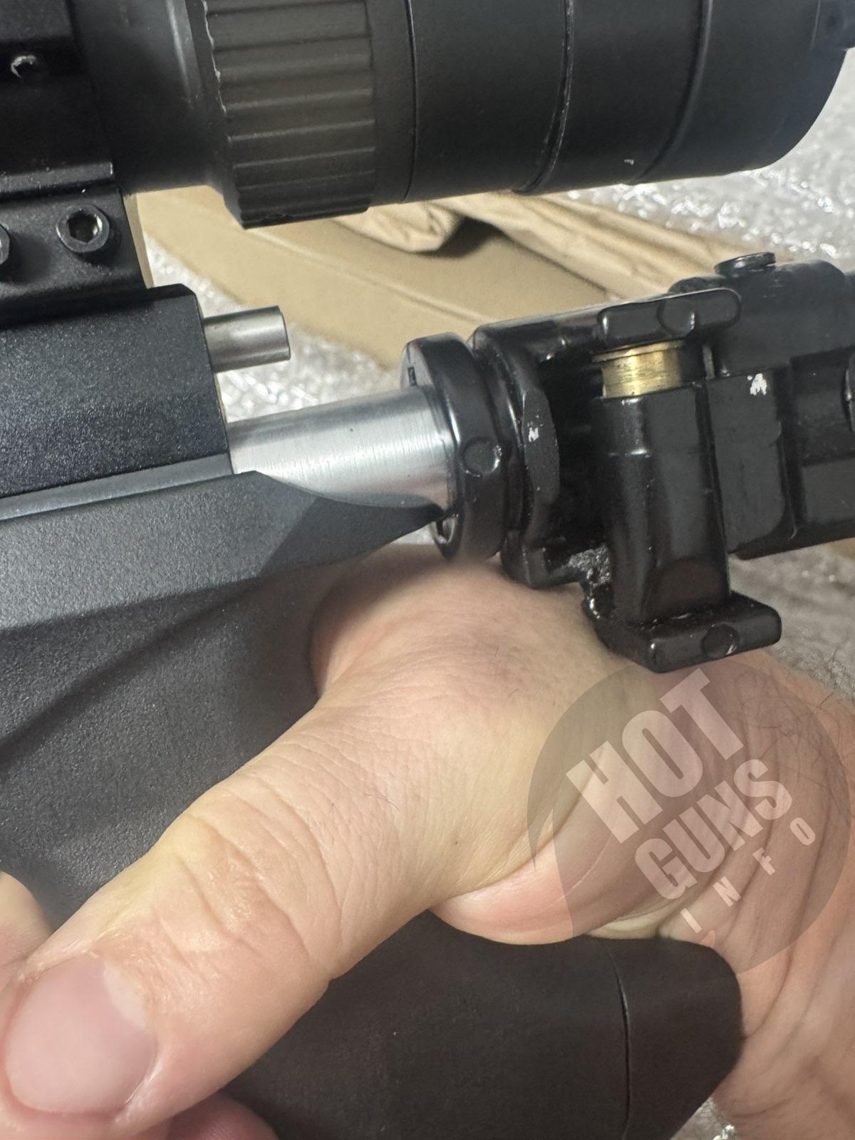 На коротком стволе сточена мушка, мешала открытию крышки прицела.