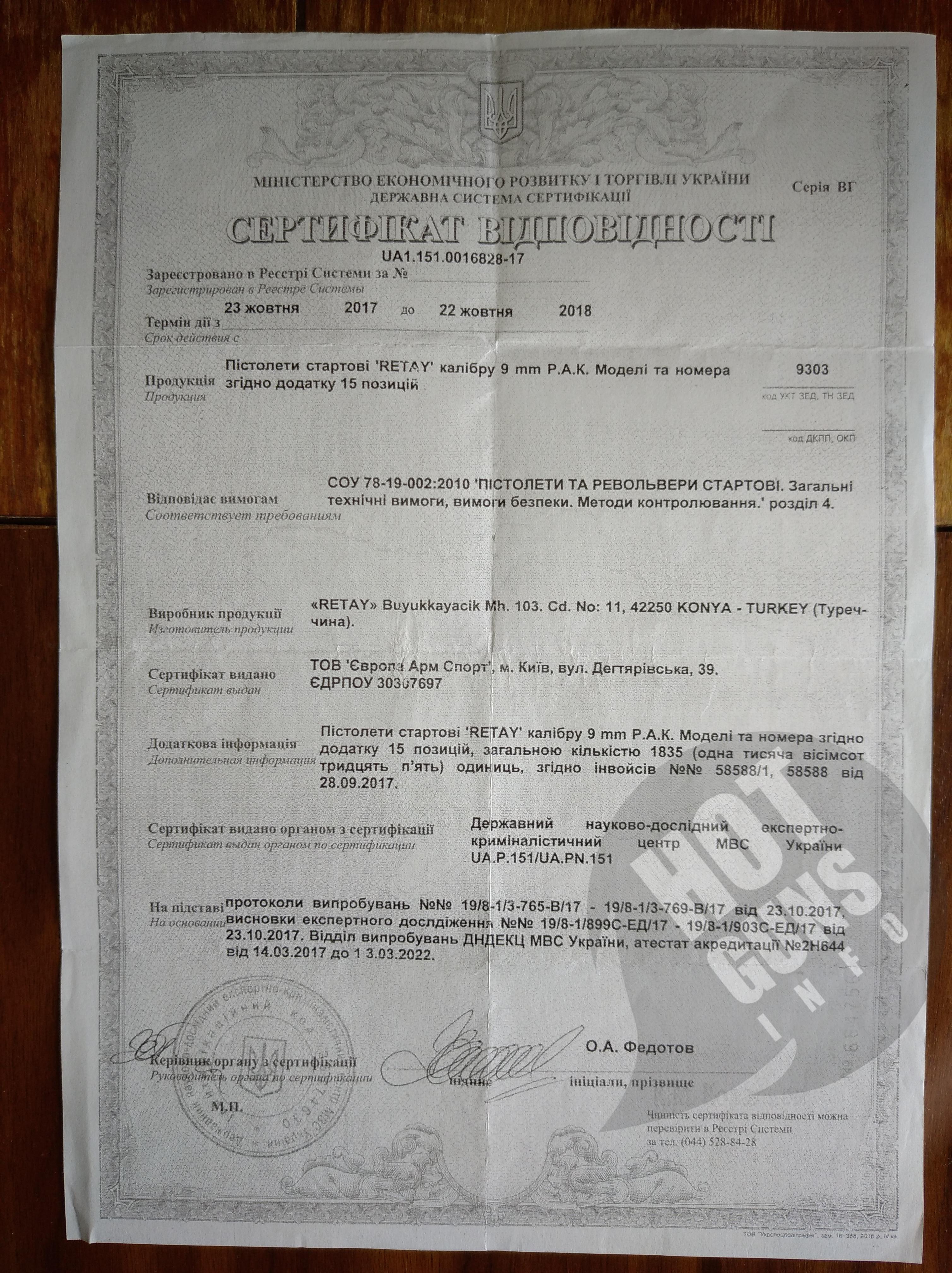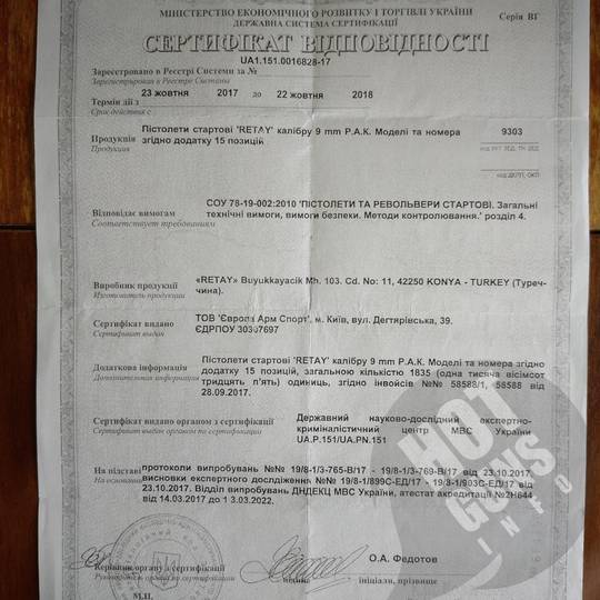 4. Сертифікат відповідності та інструкція.