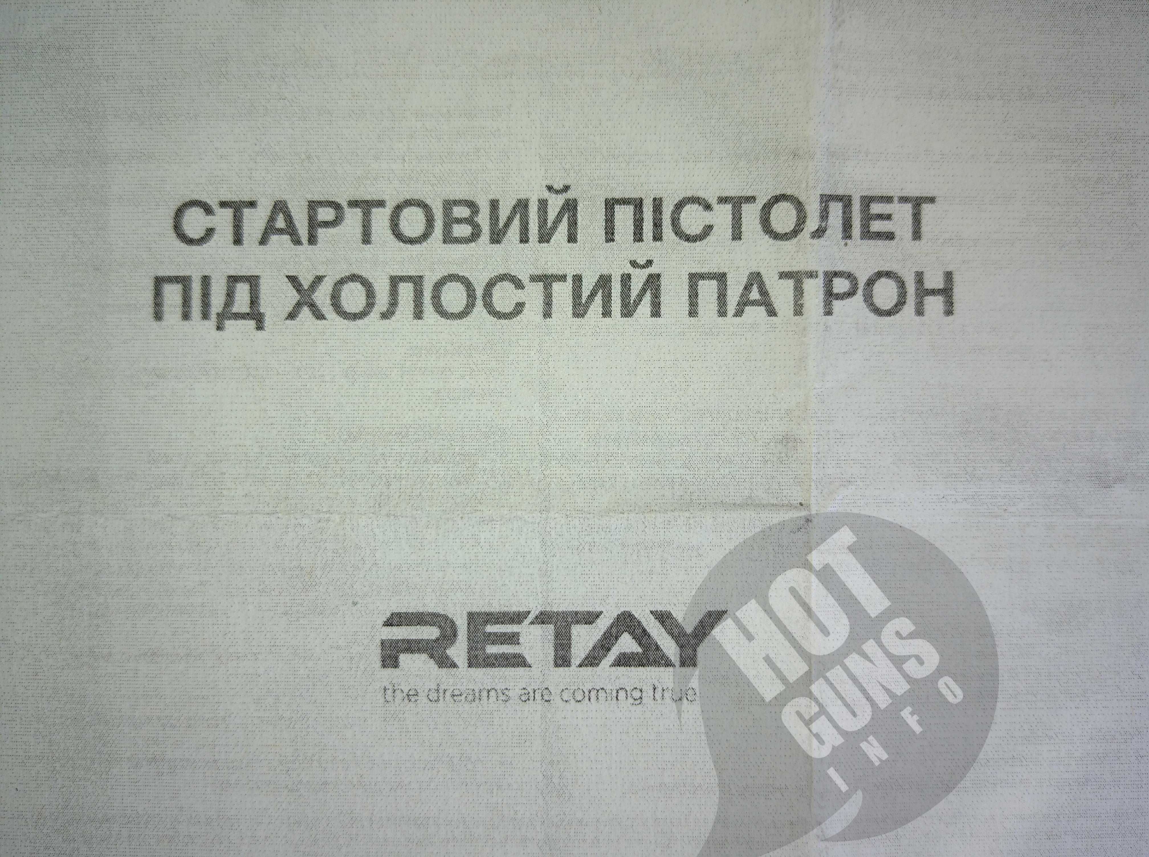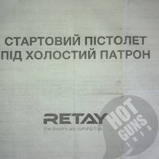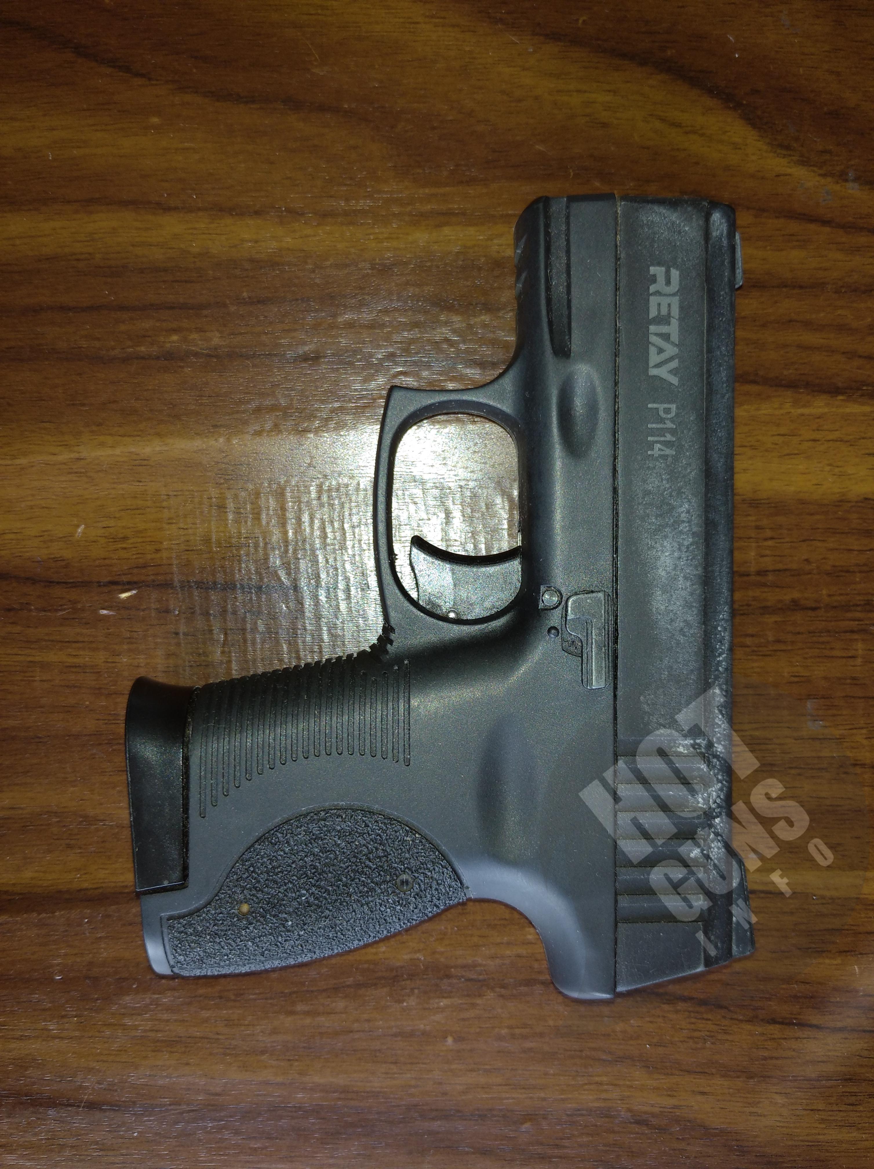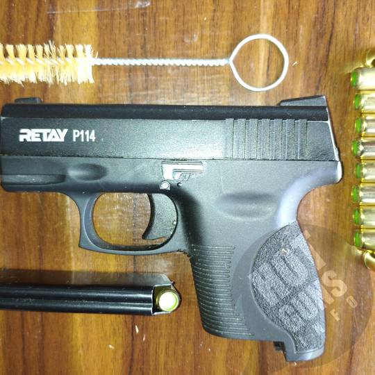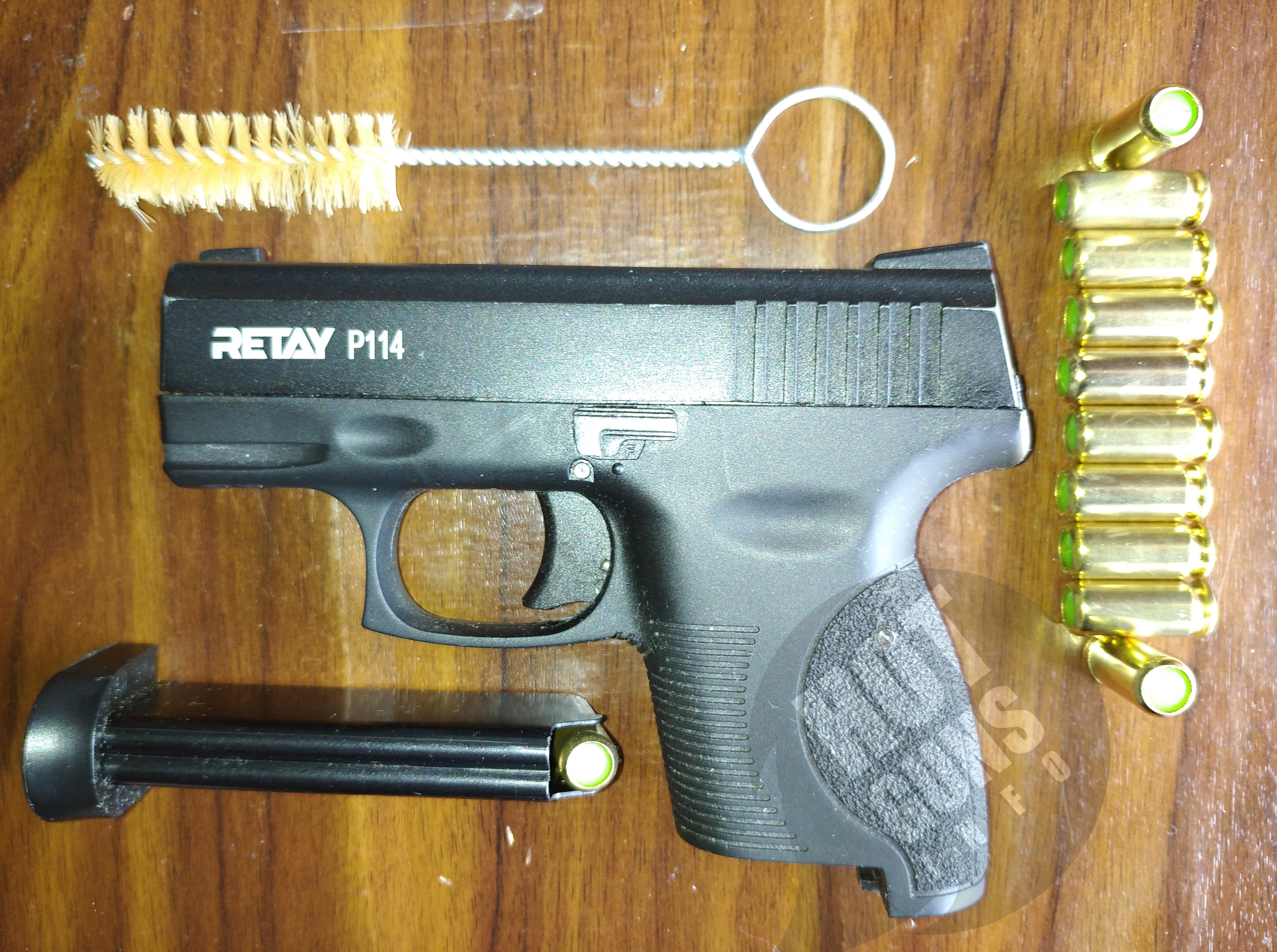 Retay P 114 – це нова модель, яка сподобається любителям компактних стартових пістолетів. Завдяки невеликим розмірам пістолет можна переносити в сумці або кобурі, транспортувати в автомобілі, зберігати в офісі. Пістолет призначений для відстрілу холостих патронів. Калібр 9 мм. Матеріал рамки – Пластик. Довжина 133 мм. Висота 104 мм. Маса 488 г. Кількість патронів 6. Прицільні пристосування - Цілик та мушка. Колір - Black. Виробництво – Туреччина.