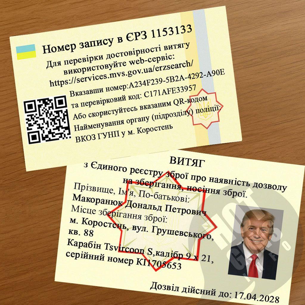 Пластиковий витяг ЕРЗ На Зброю! Тепер ваш дозвіл Завжди Буде З собою!Одна картка – одна одиниця зброї;Час виготовлення - до двух днів;Ціна 500 грн