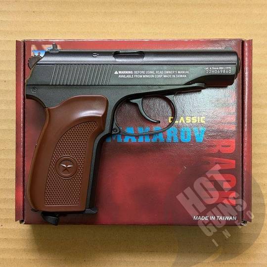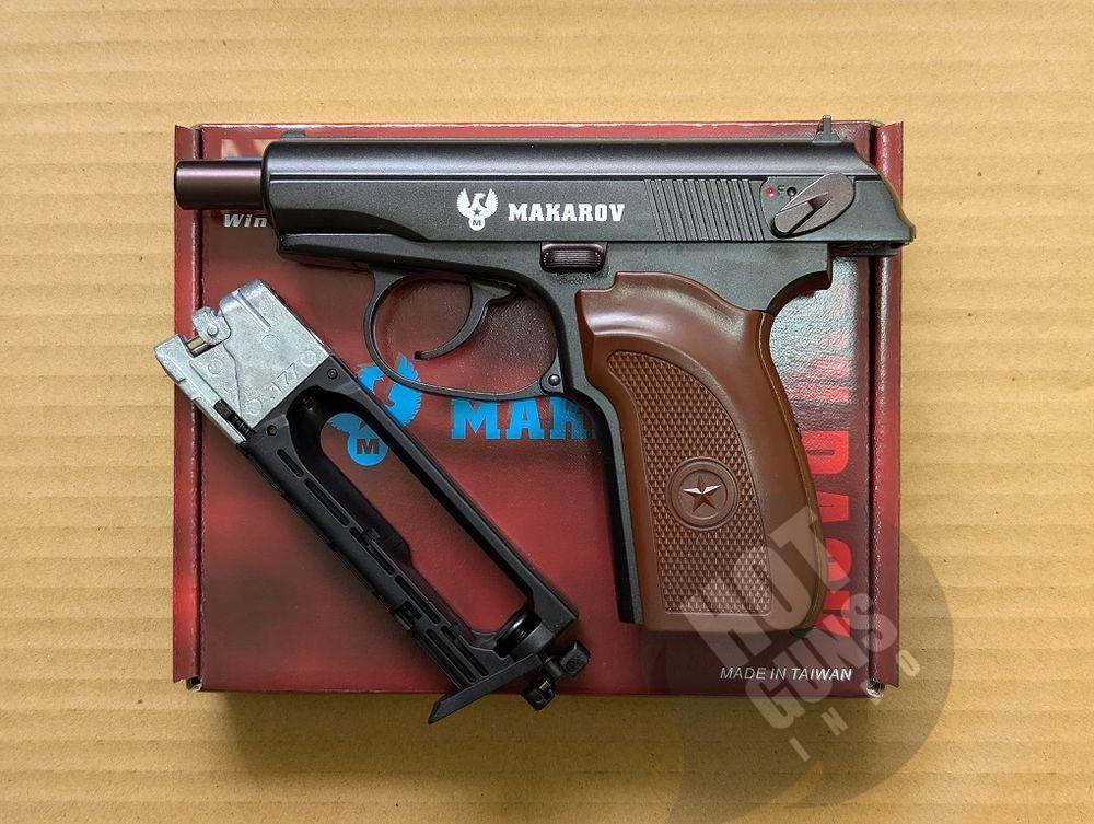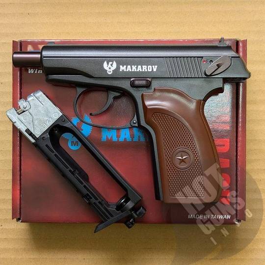 Makarov Classic PM Blowback - это пневматический газо-балонный пистолет, изготовлен на мощостях тайванской компании WinGun. Внешне напоминает всем известный ПМ (пистолета Макарова).