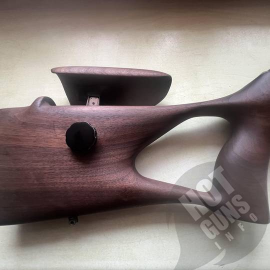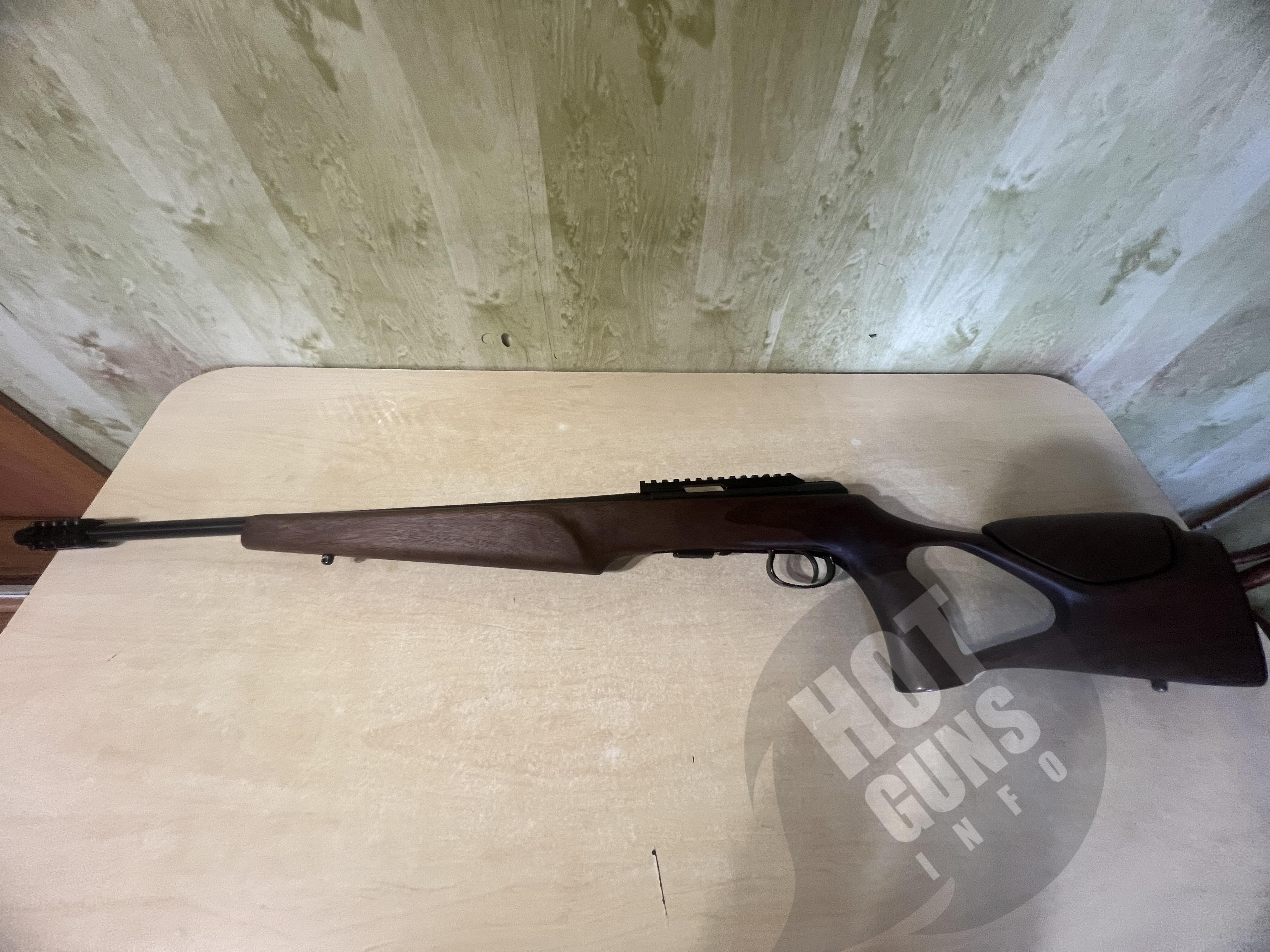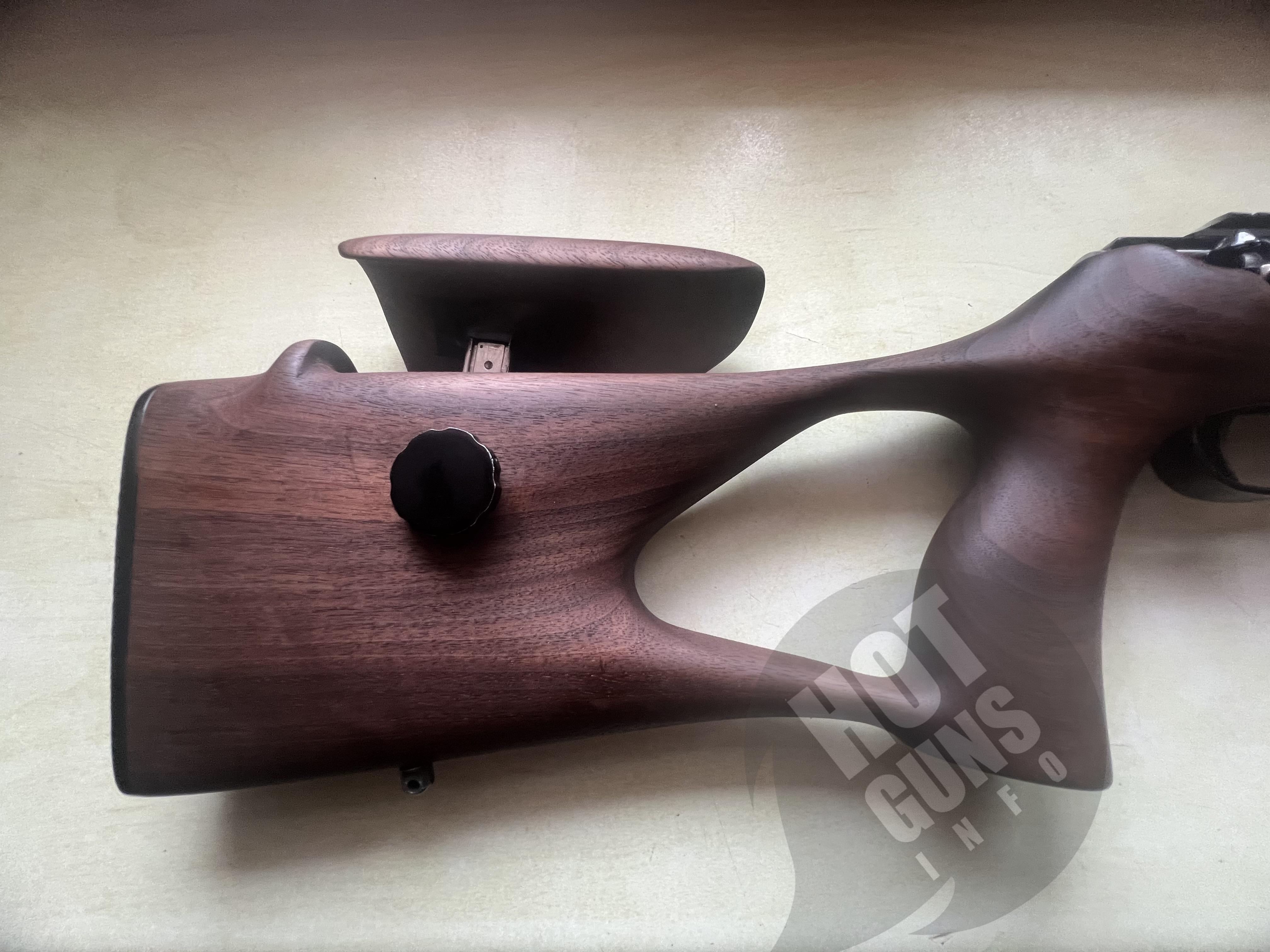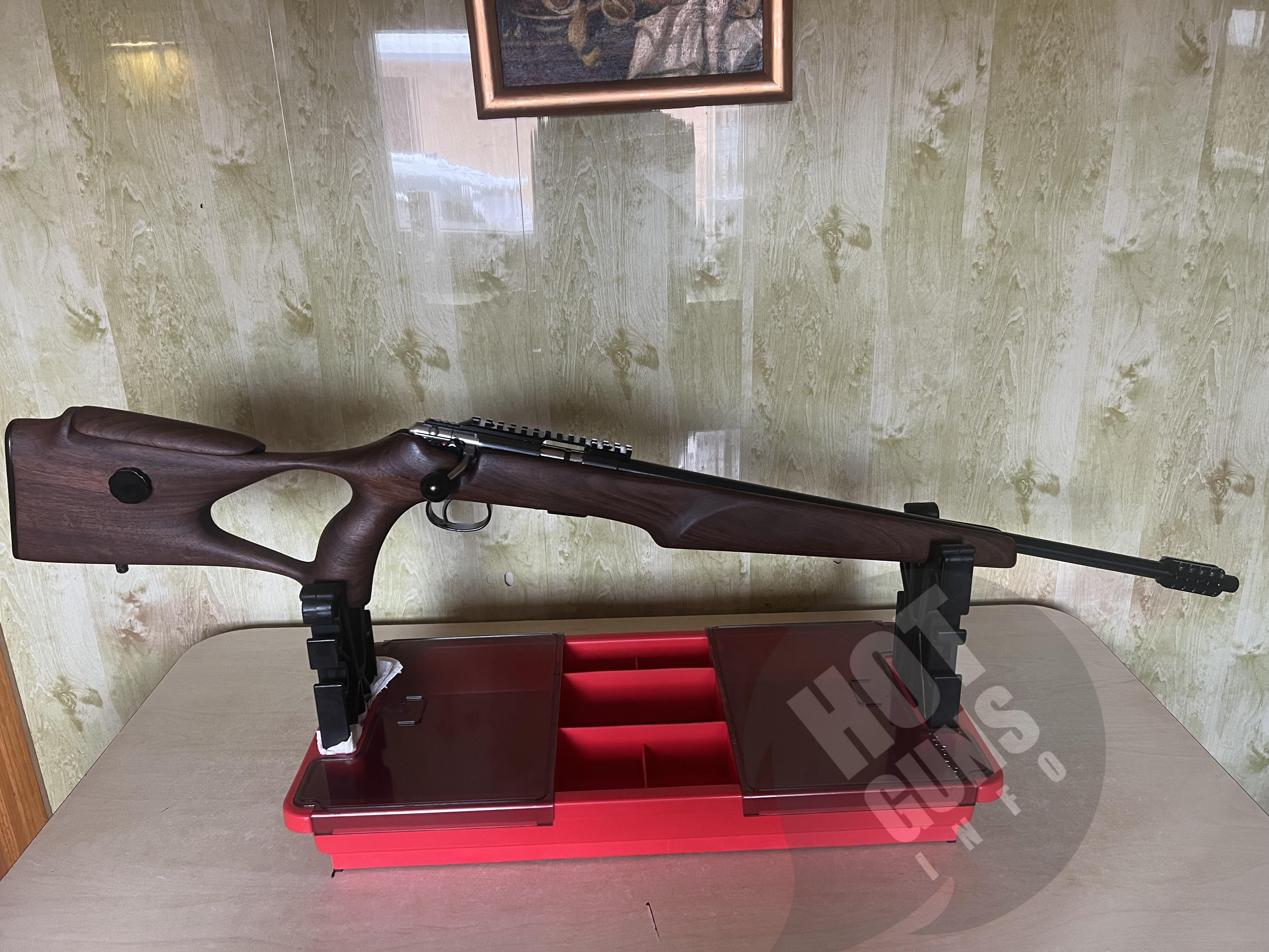 Гвинтівка високоточна преміум класу, настріл при реєстрації та пристрілка прицілу 20 набоїв. Ложе виготовлено, по індивідуальному замовленню з турецького горіха 2 го класу якості. Приклад з регульованим підщічником.( Дерево на ложі карабіну надзвичайно гарної структури , вживу набагато краще ніж на фото). Додатково , встановлено адаптер перехідник під глушник ( адаптер фірми Steel, нержавійка покрита церакотом, захисна гайка на різьбу ) ствол карабіна не різався!!!!