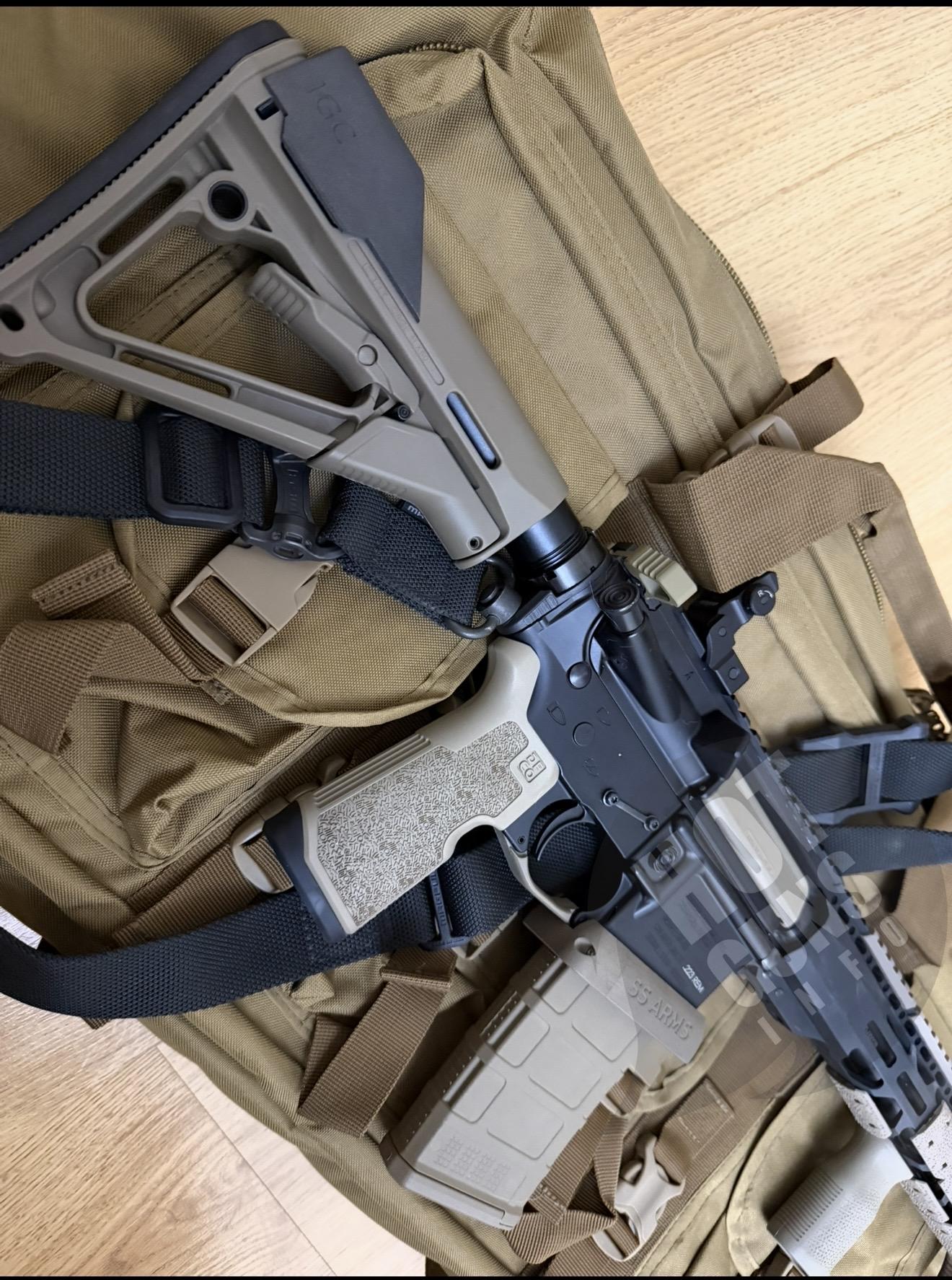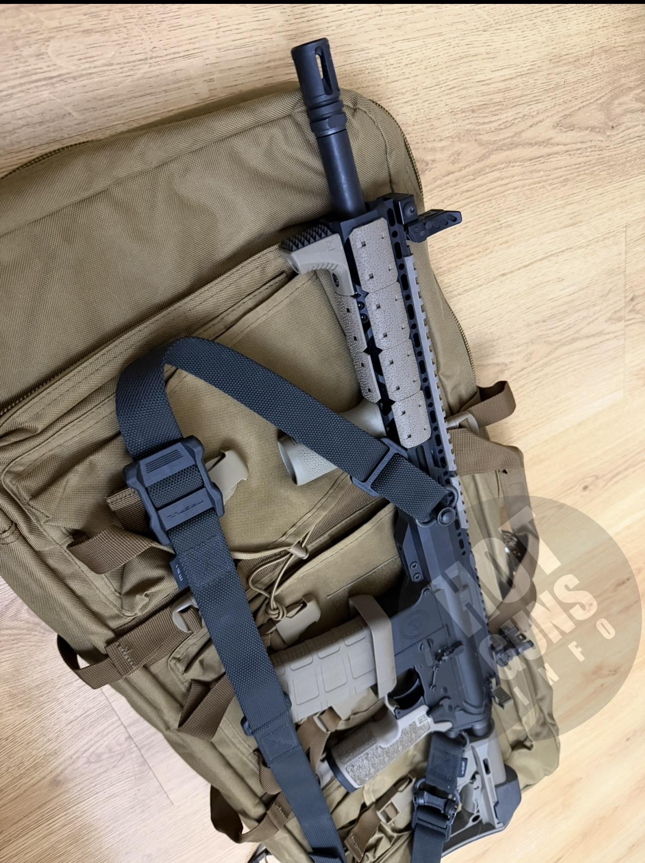 Руківʼя переносу вогню, упор, QD плейт, QD антабка, розширена скоба спуску, шторка викиду гільз, накладки на M-LOK та приклад від Magpul.