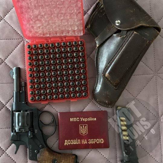 Ціна за комплект:Револьвер офіцерський 1918 р, інструкція з експлуатації, шомпол, кобура і магазин до ПМ для НЗ, патрони 114 шт, сейф для зберігання.