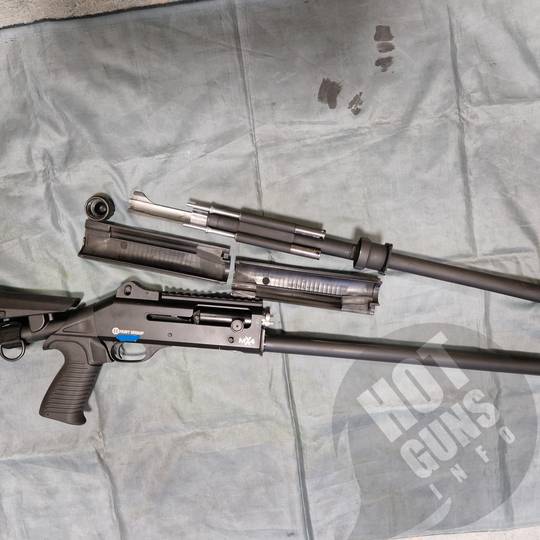 Магазин 7+1 , 2 поршні. У комплекті набір чоків +ключ