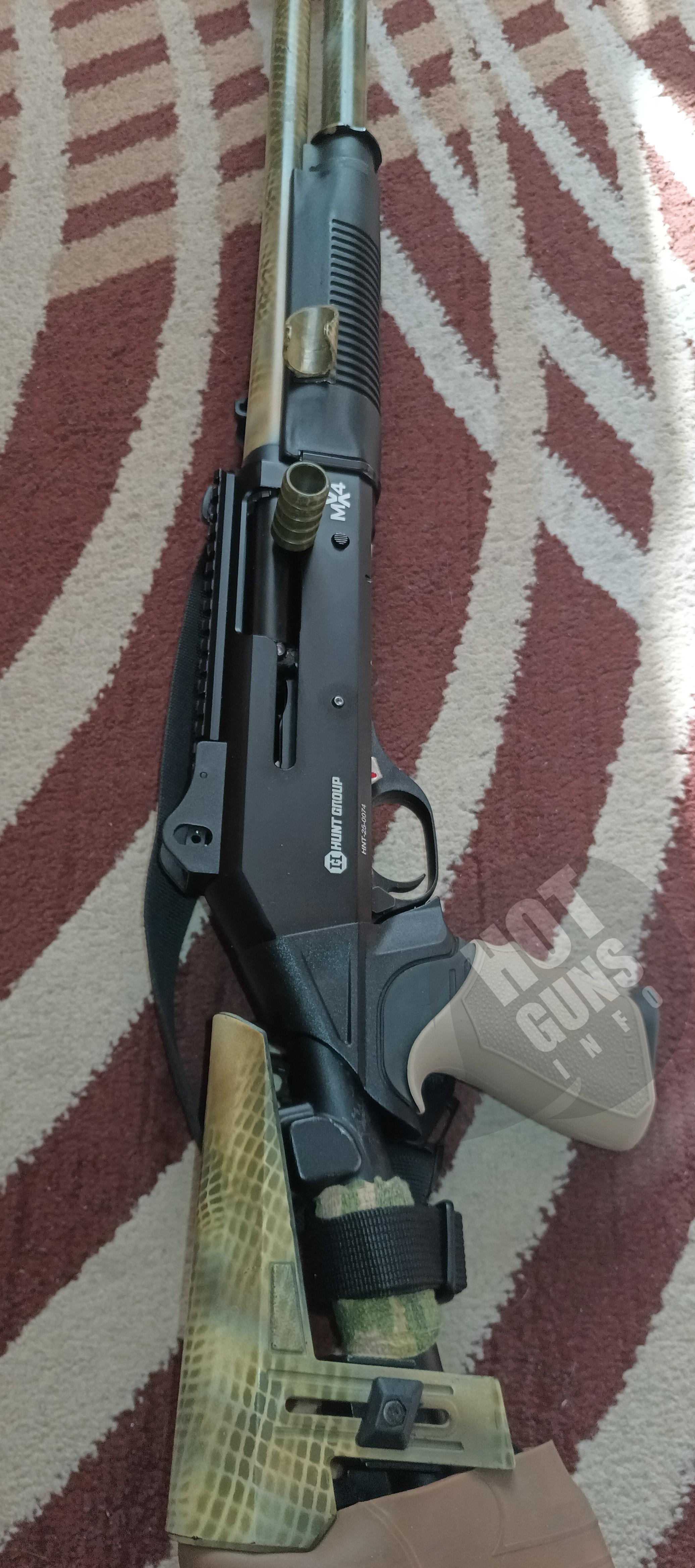 Рушниця HANT MX4 CROUP точна копія відомої тактичної рушниці Benelly M4 , тільки виробленої в Туреччині,відомою компанією HANT GROUP! Довжина ствола становить 51 см з можливістю подовжити на до 15 сантиметрів,зарахунок спеціальних подовжувачів ( доречі окремо за бажанням додатково можна докупити,а саме подовжувач зі звуженням ствола,напівчок компанії " Тіхон" , значно збільшить дальність і влучність для шроту,та картечі для тактичних завдань та полювання... Є в наявності!!! Емність магазину складає 7 набоїв+ 1 на лоток+ 1 в патронику!!! З можливістю продовження на 2-3 набої зі спеціальним подовжувачем!!! Купив і оформив в кінці листопаду 2025 ,настріл 200 набоїв ( пройшов обкатку в різних умовах)...! Покрив деякі деталі фарбою щоби були більш захищеними від вологи і перепаду температур і подряпин...! В комплекті буде додатково ручка взведення ,а також ремінь Ragnarok !Кому цікаво дзвоніть,пишіть на зв'язку!