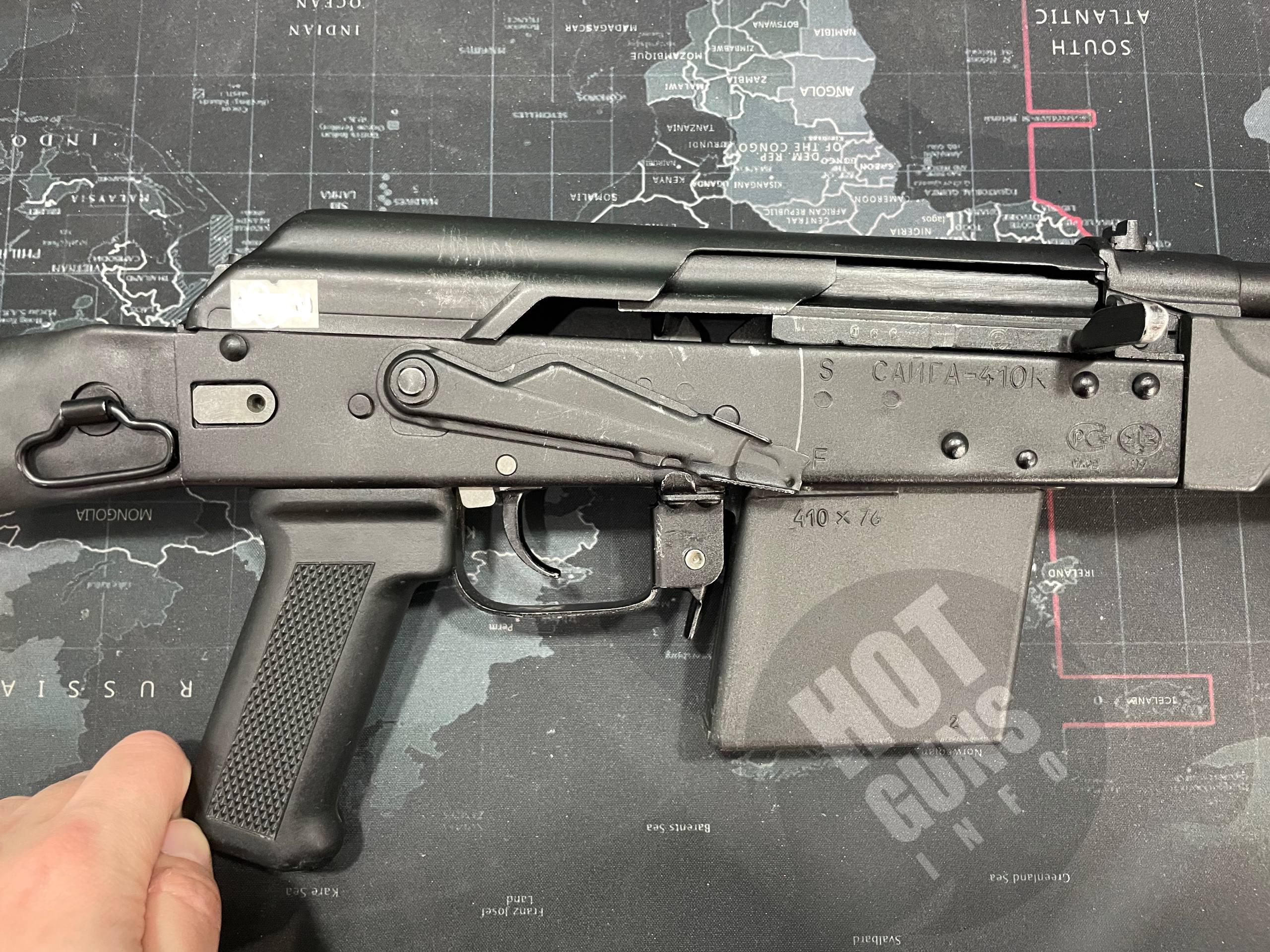 Продаётся Сайга-410К (самая коротка версия) 2009 года выпуска , установлена затворная задержка , возвратный механизм нового образца , приклад от АК-74М 3й генерации с проушиной под ремешок «галоши» , состояние пластика близкое к заводскому , краска имеет следы транспортировки и переноски , технически без каких либо замечаний , работает на любых таховских патронах , газовый блок регулируемый. Патроны по цене от 33 до 39 грн , отличное оружие для обучения и развлекательной стрельбы , готова к продаже
