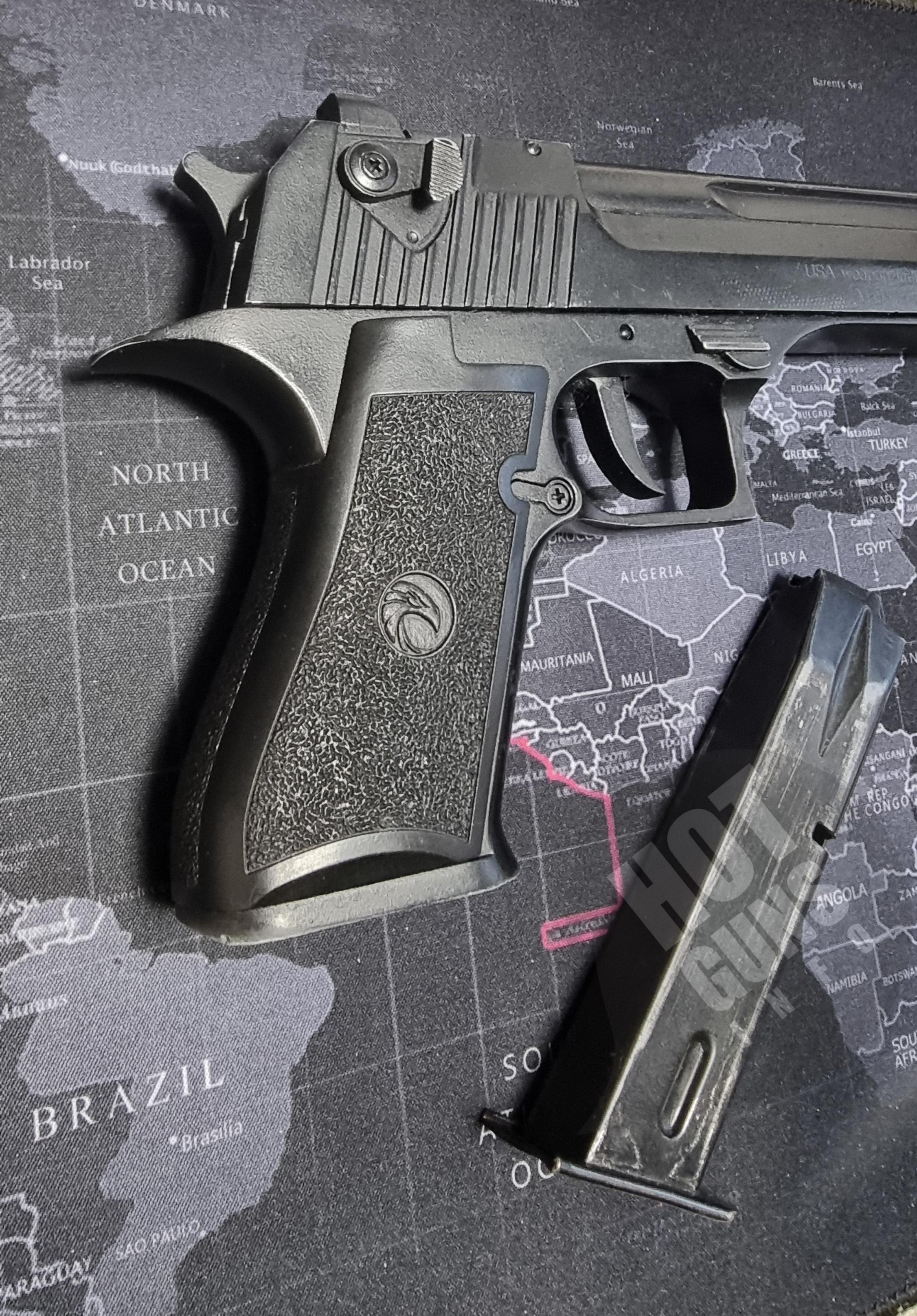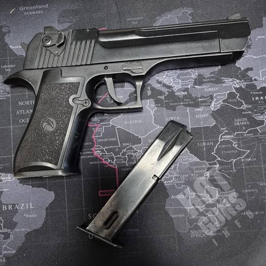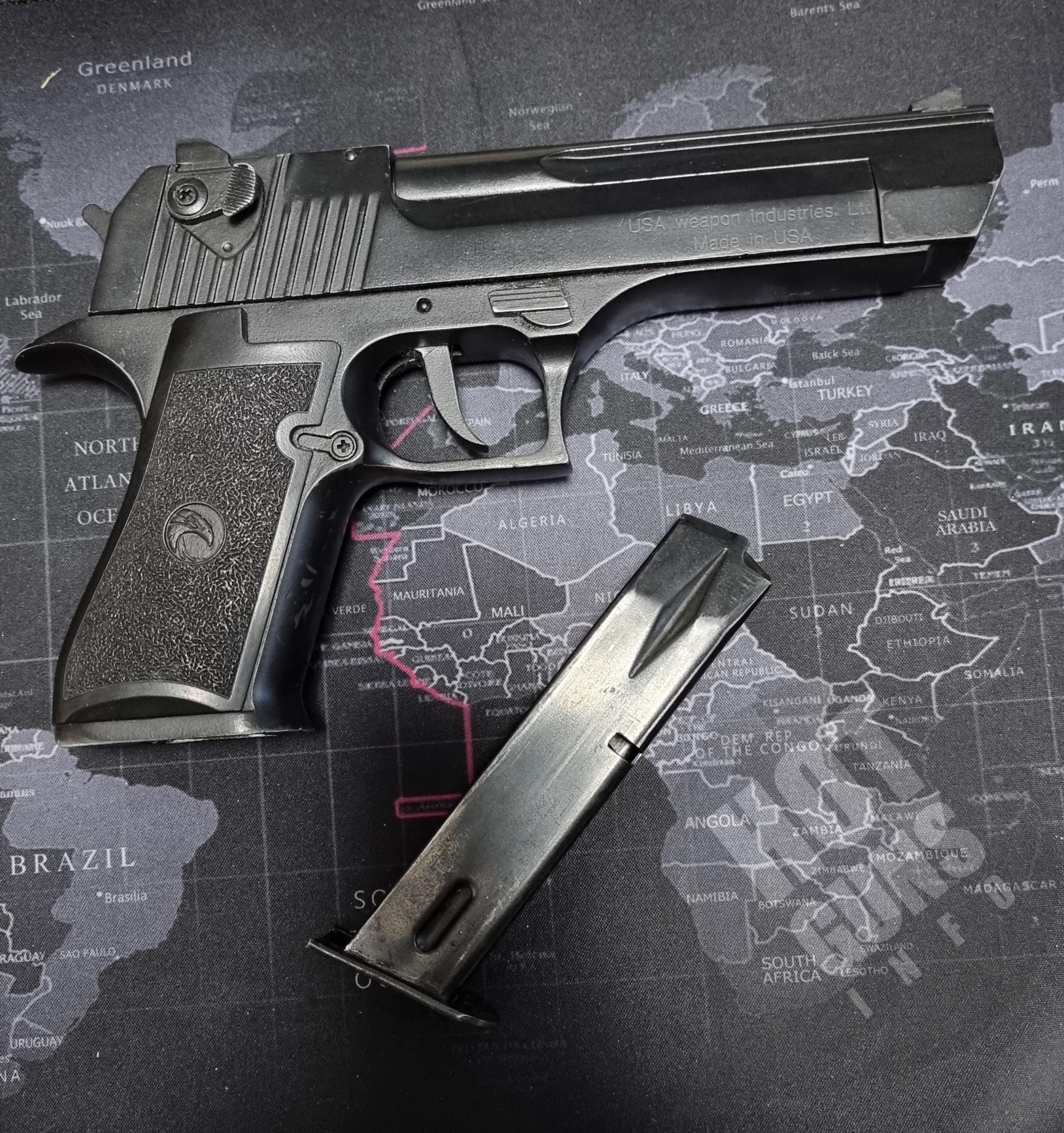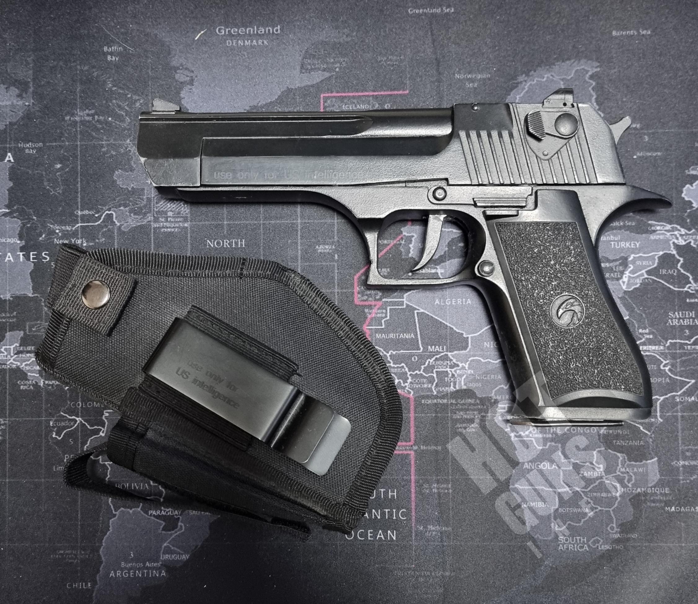 Сигнально-шумовий пістолет Desert Eagle 9 мм. використовувався небагато є потертості , які його ще більше красять. Повністю залізний Продається разом з кобурою . Якість виготовлення дуже хороша. Привезений з-за кордону