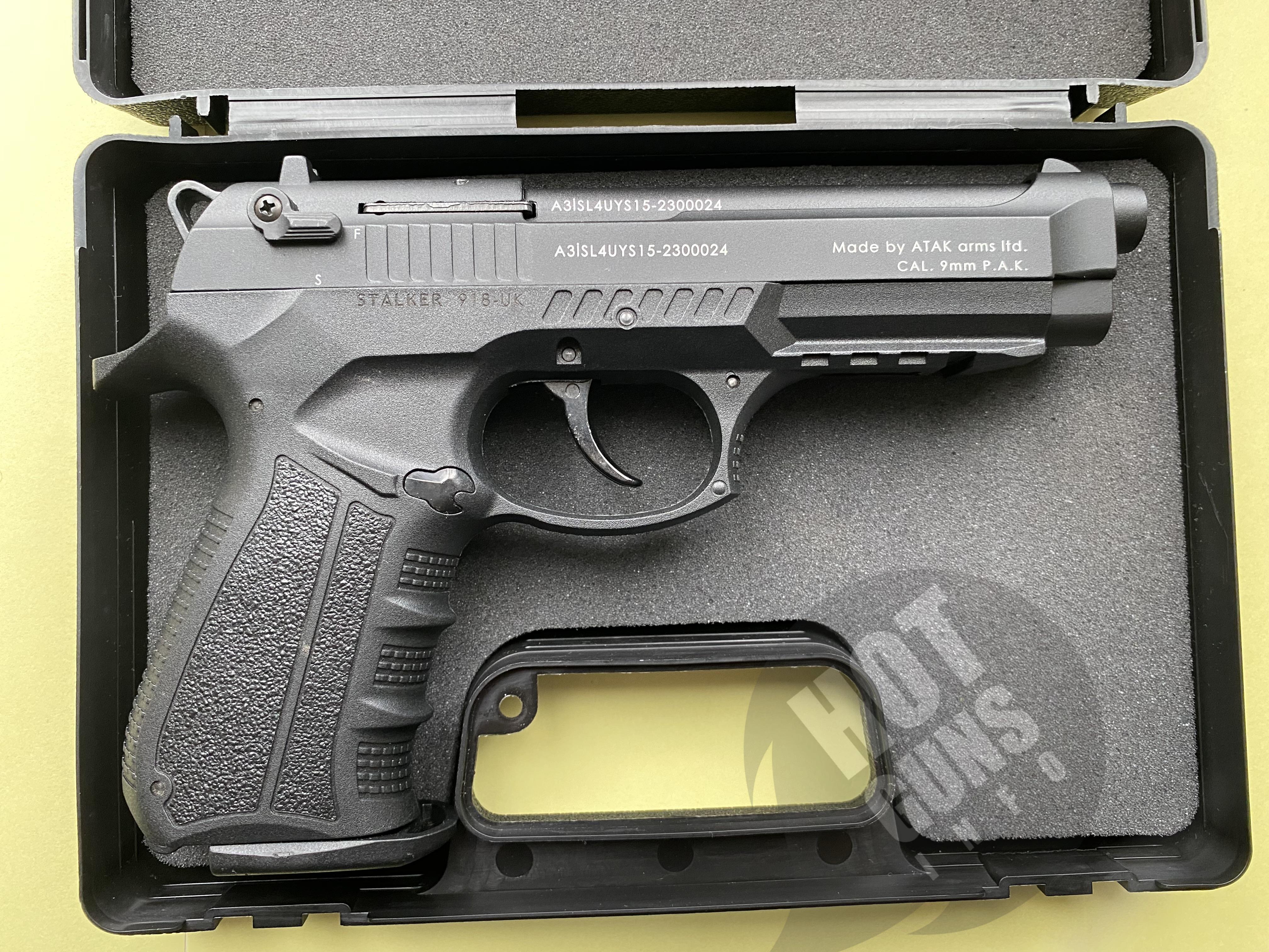 Тип Сигнально-шумовий/стартовий/холостий/СХП Бойовий аналог Беретта 92 Виробник Atak Arms Страна виготовлення Туреччина Матеріал корпусу/рамки Металевий сплав ЦАМ Ствол Гладкий, монолітний, сталевий Матеріал рукоятки Пластик Матеріал/рядність/ємність магазину Сталь/однорядний/18 патронів Тип холостого боєприпасу/калібр Холостий патрон/9 мм Прицільний механізм Целик і мушка, нерегульований Запобіжник Двосторонній, прапорцевий Ударно-спусковий механізм Нерегульований, подвійної дії Дозвіл Не потрібно Сертифікація Товар сертифікований в Україні, завантажити У комплект входить Пістолет, пластиковий кейс, 1 магазин, інструкція Стан Новий, 2023 рік випуску Розміри - Довжина/Висота/Ширина, мм 218/143/36 Вага, грам 970 https://start-guns.com.ua/startovij-pistolet/stalker918/