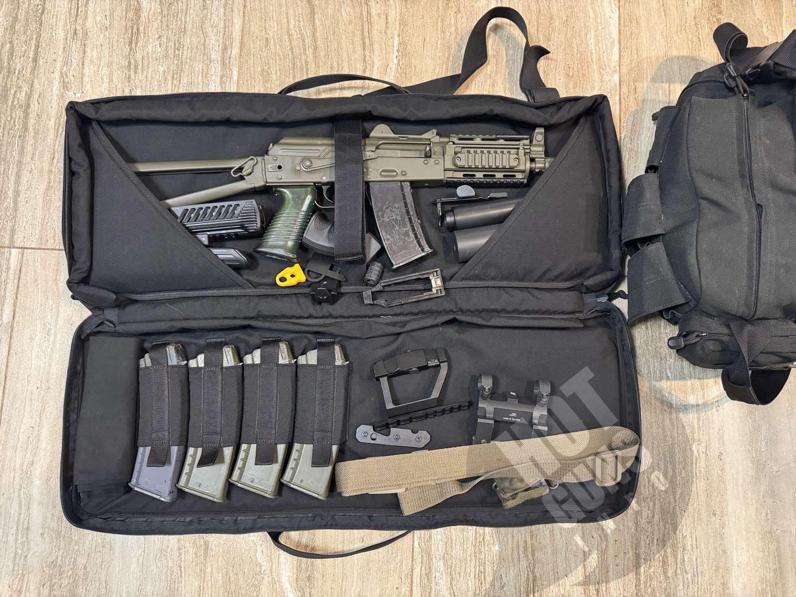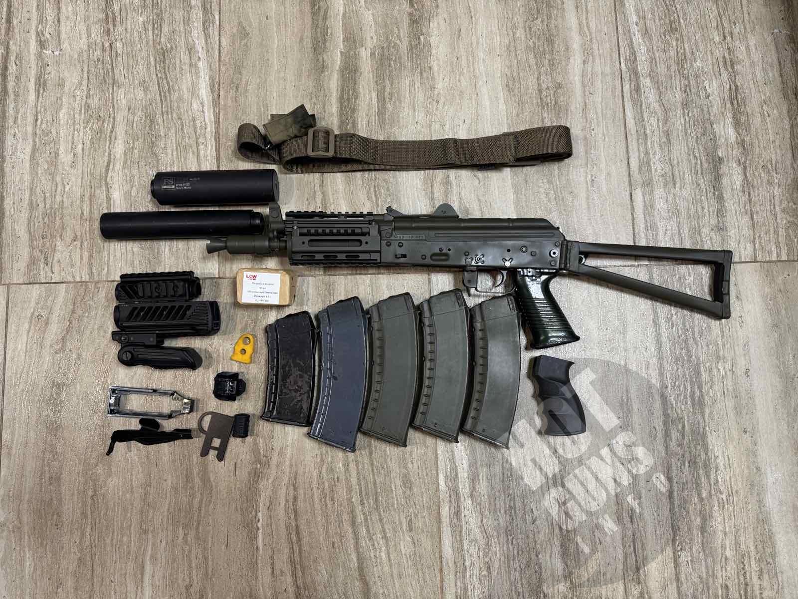 Два ПБСа, 4 магазини, розширював шахти магазина, збільшена кнопка скиду магазина, друге нове руківʼя, другий комплект пластикової цівки з регульованою ручкою переносу вогню, ремінь, чохол.