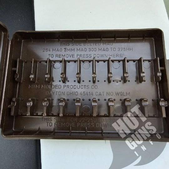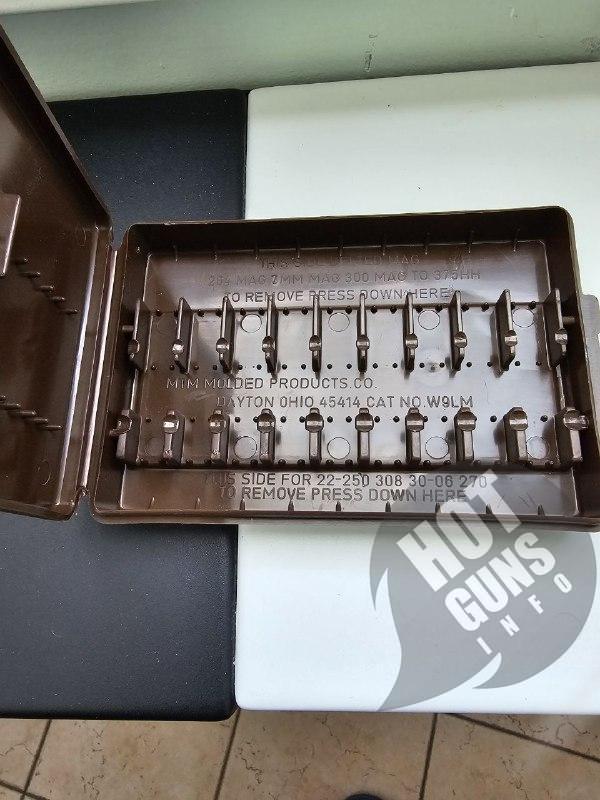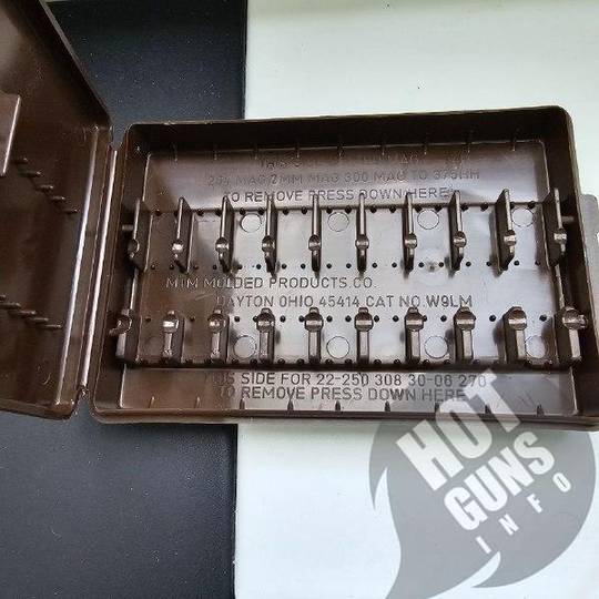 В коробке могут разместиться 9 патронов разных калибров в зависимости от разворота патрона.