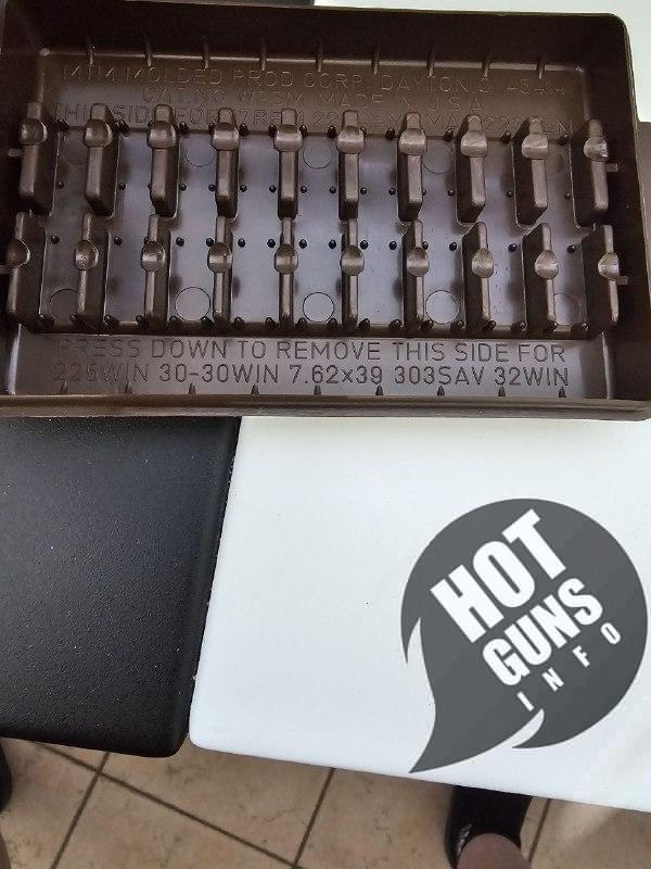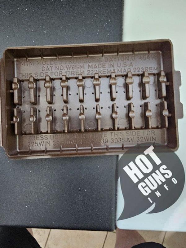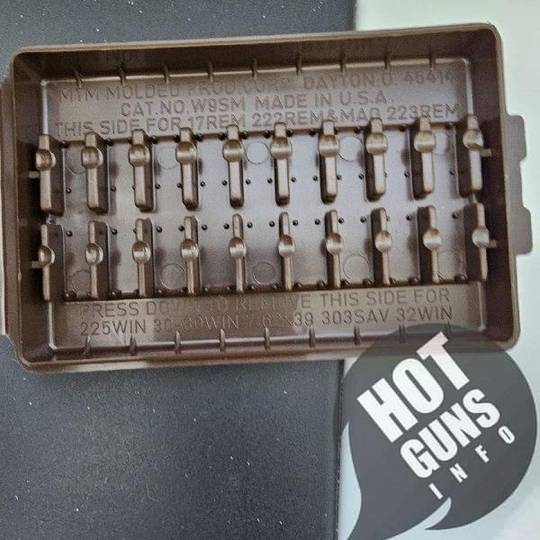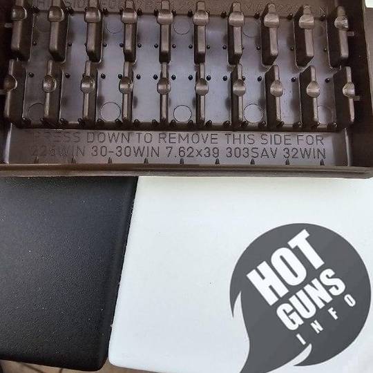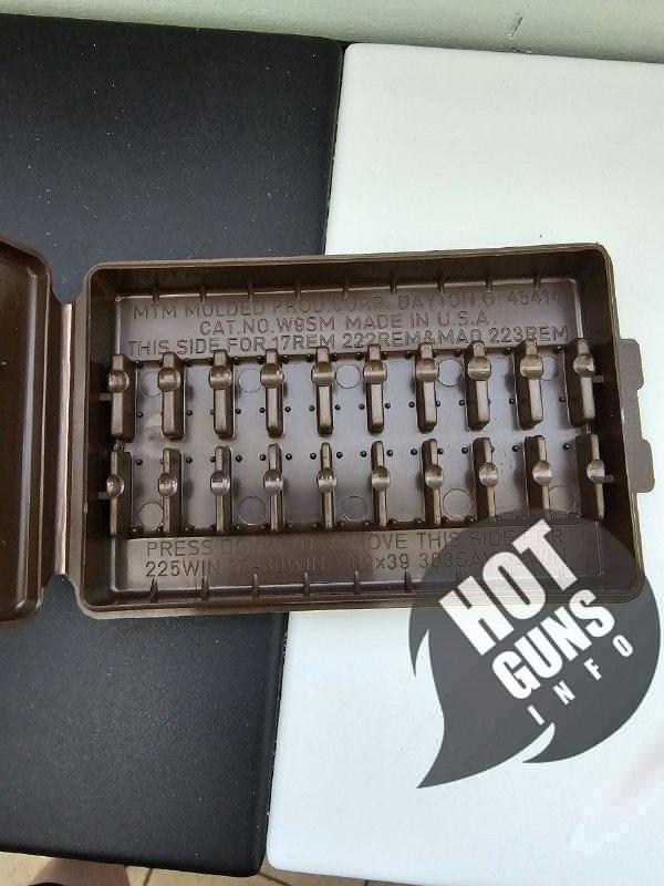 Коробка универсальная подходит для 9 патронов разных калибров, в зависимости от разворота патрона.